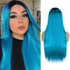 Nombre del producto: Peluca tocado suministro negro degradado gris abuelita cabello largo lacio peluca tocado raya media tocado largo