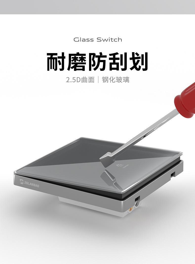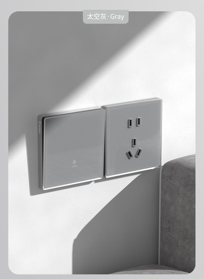 Interruptor doméstico blanco de vidrio templado, placa grande oculta, panel de una abertura de cinco orificios, toma de interruptor sin marco tipo 86 al por mayor