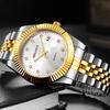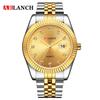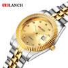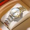 Reloj de pareja para hombre y mujer resistente al agua con diamante luminoso lupa calendario reloj de cuarzo chapado al vacío IP