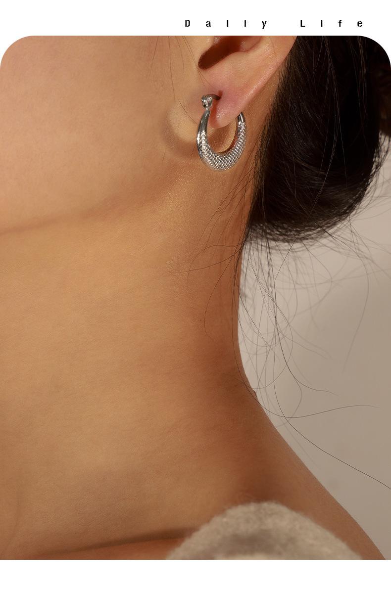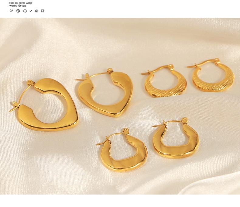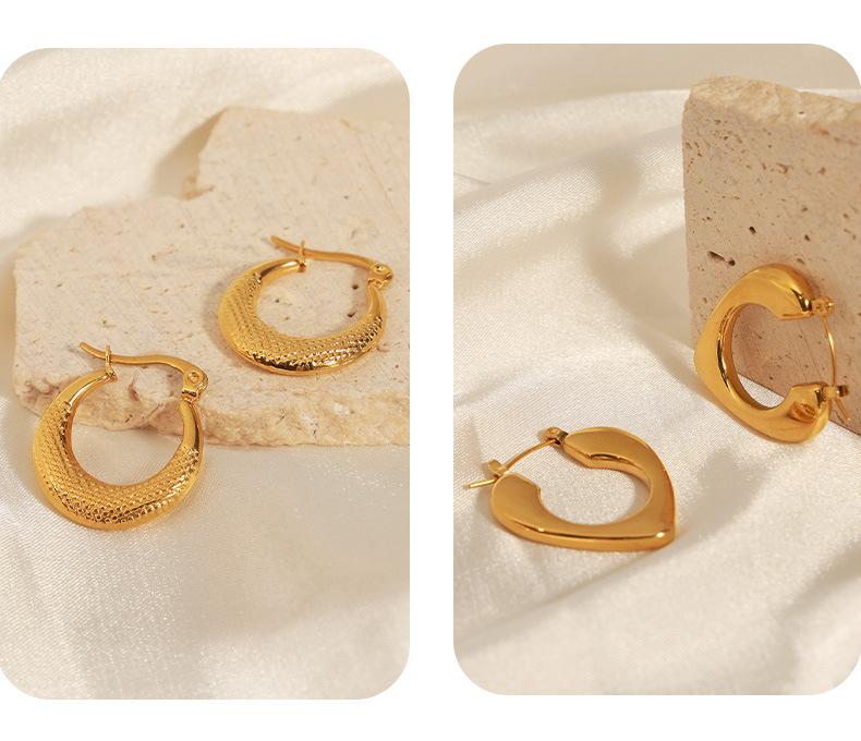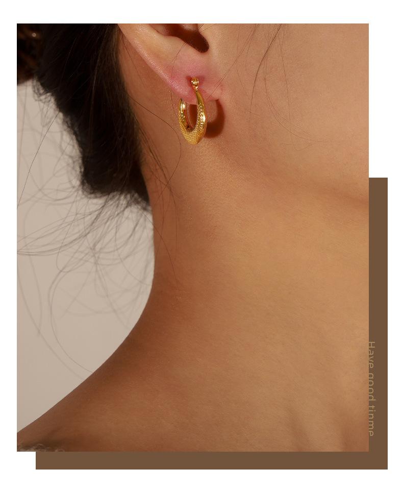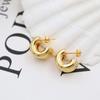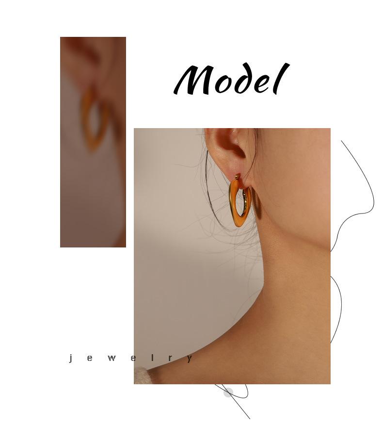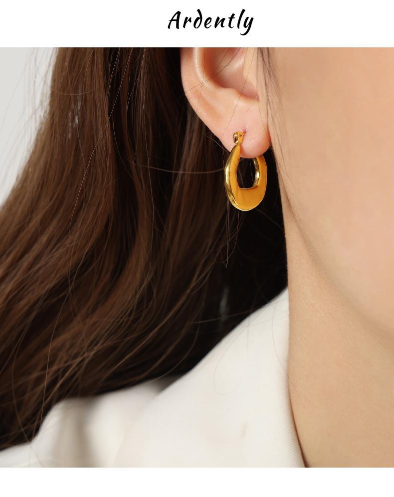 Aretes estilo Ins transfronterizo europeo y americano Simples de lujo ligero Combinan con todo Gap Aretes geométricos de acero de titanio chapados en oro de 18 quilates Aro hueco para la oreja
