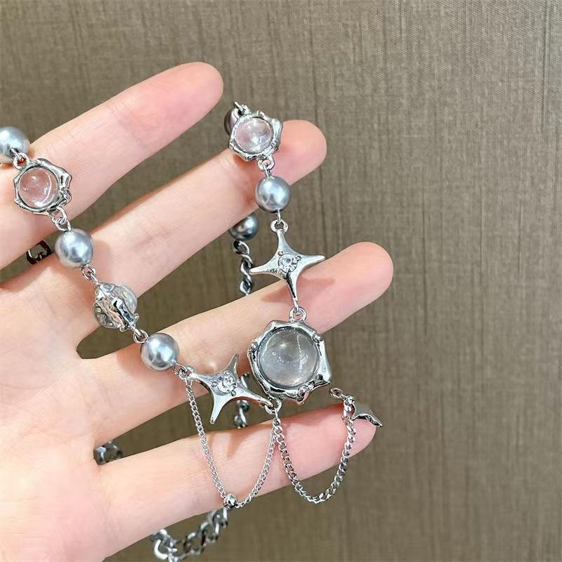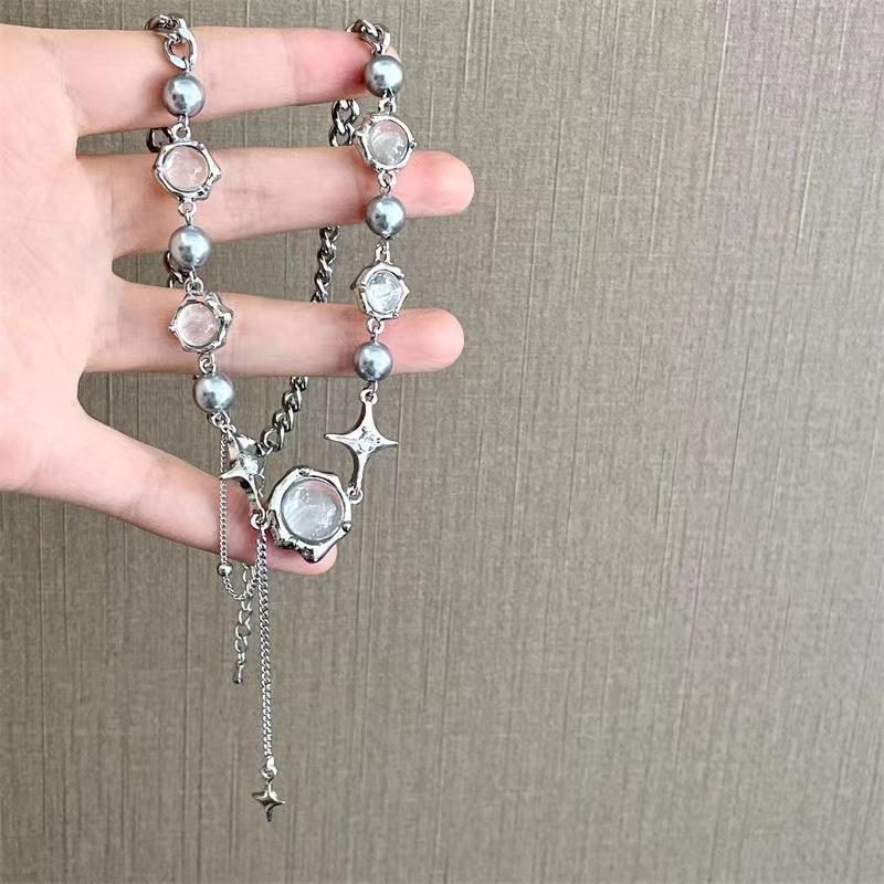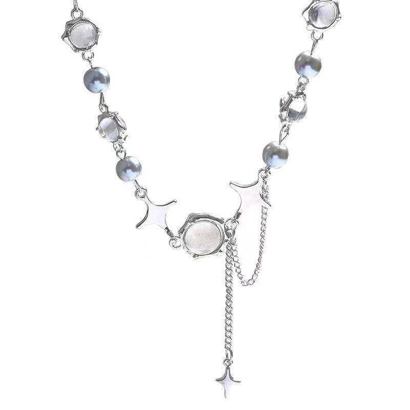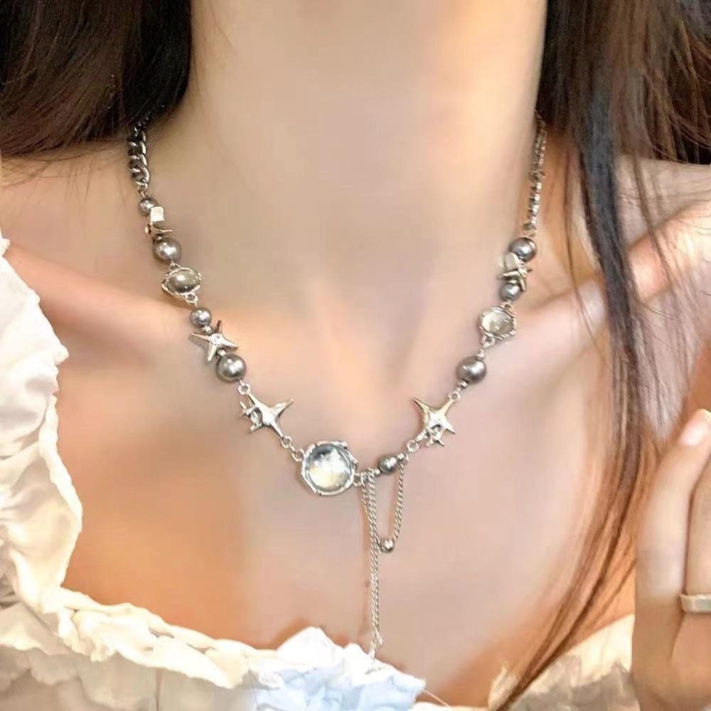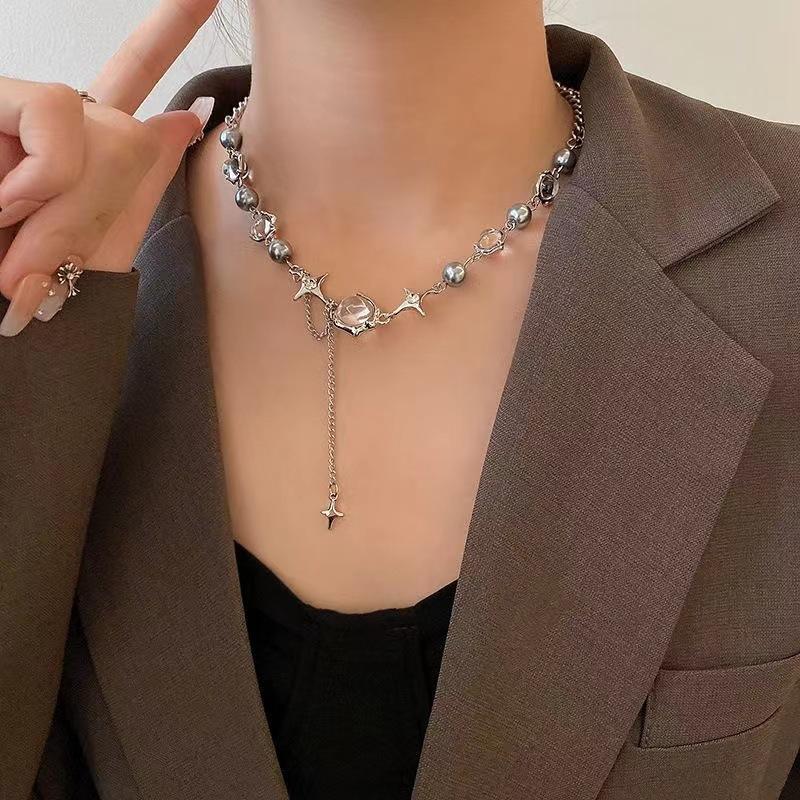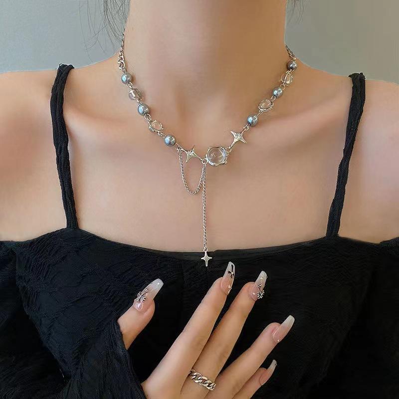 Compra Collar de circonita con piedra de luna blanca para mujer, estilo veraniego, dulce y moderno, para chicas Spice Girls, accesorios para celebraciones de Internet, diseño de nicho, cadena de clavícula avanzada y moderna. al por mayor en Joom.pro