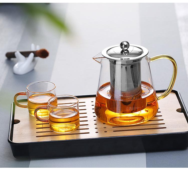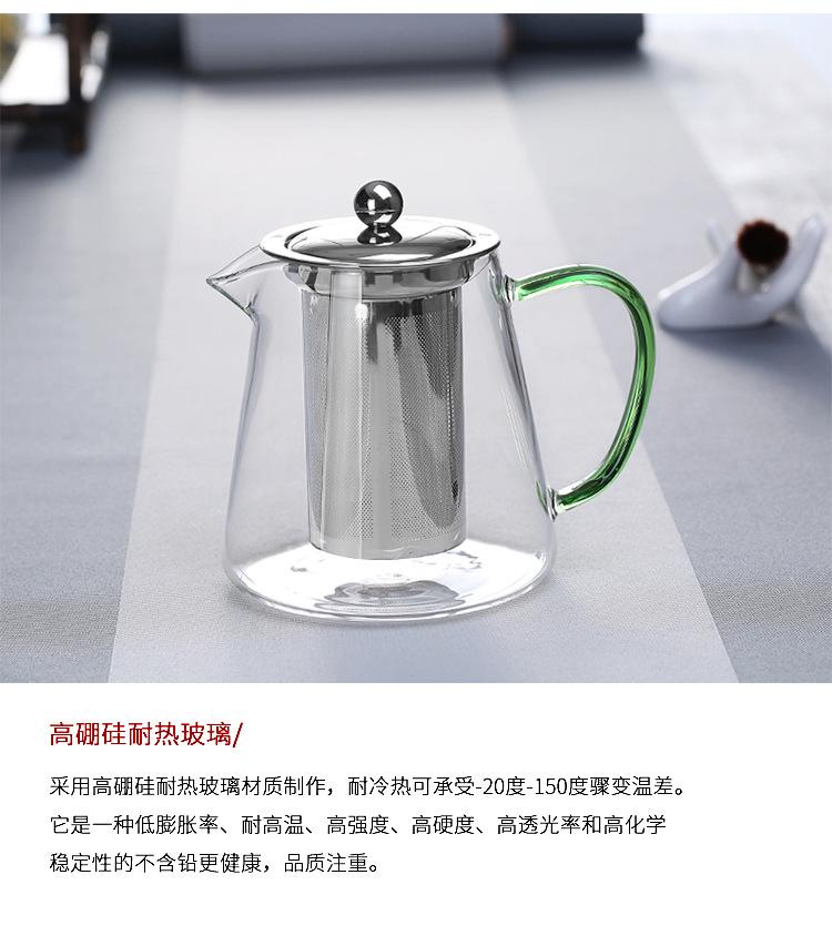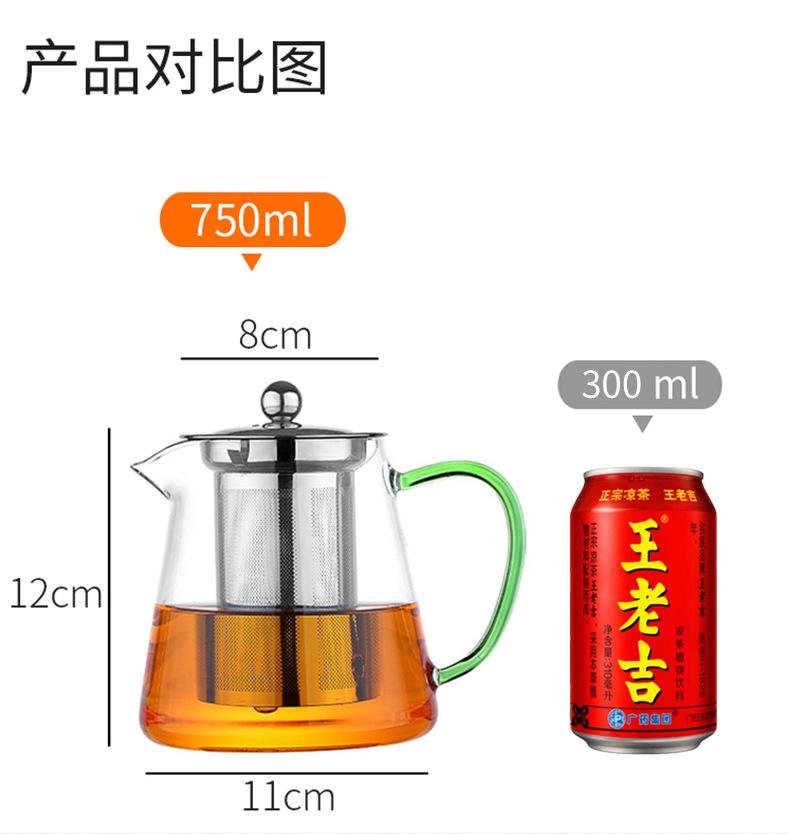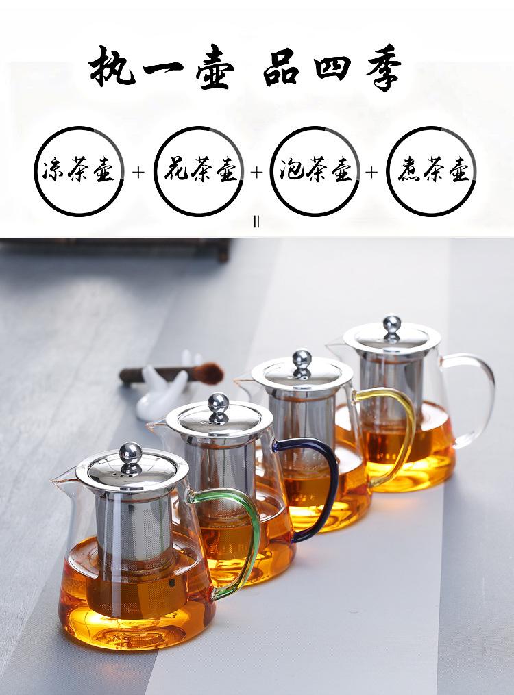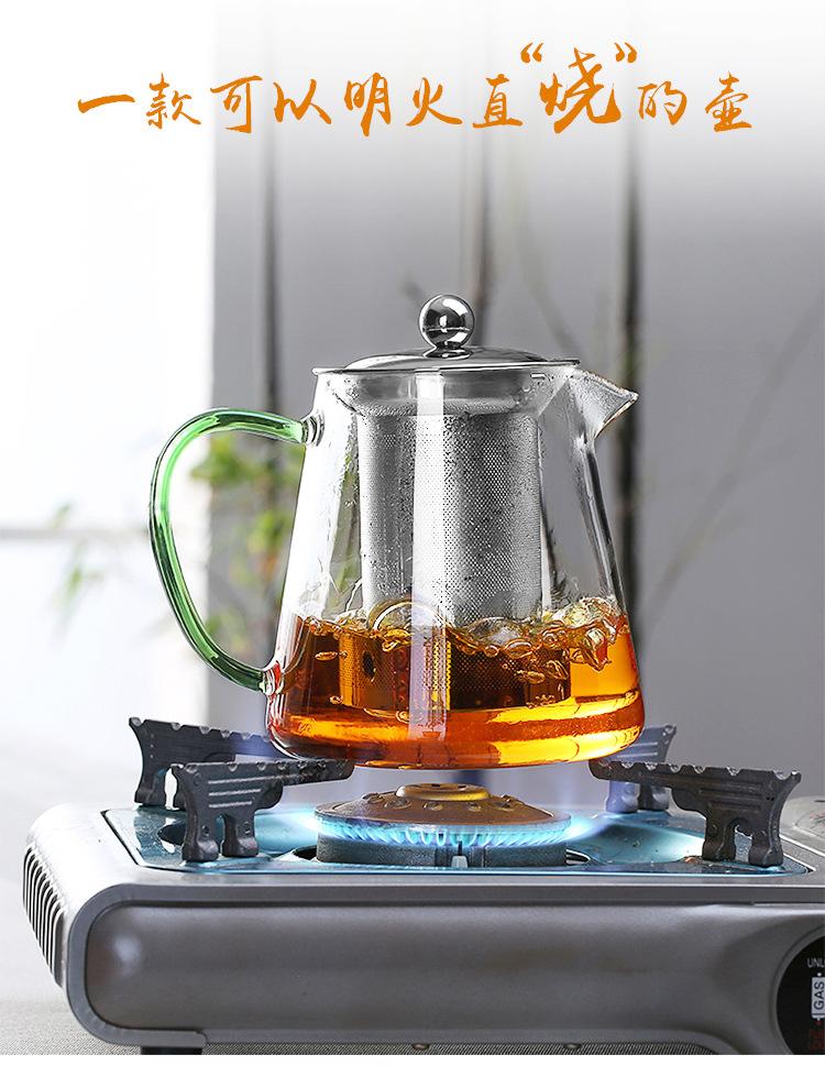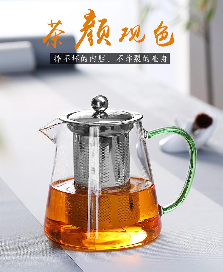 Tetera de vidrio resistente al calor transfronteriza, tetera de borosilicato alto, revestimiento de acero inoxidable transparente, tetera de color resistente a altas temperaturas