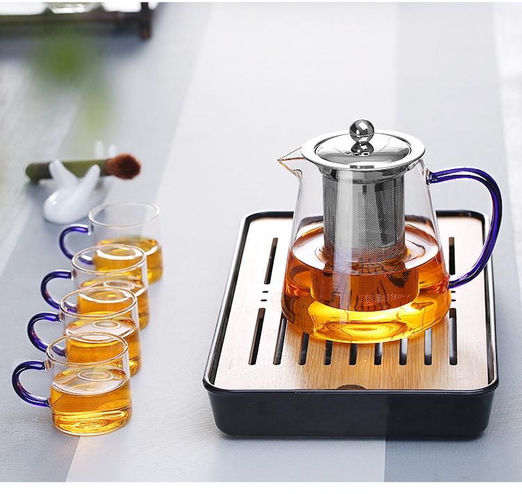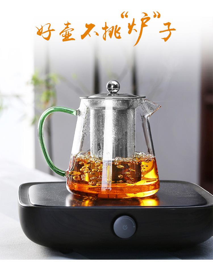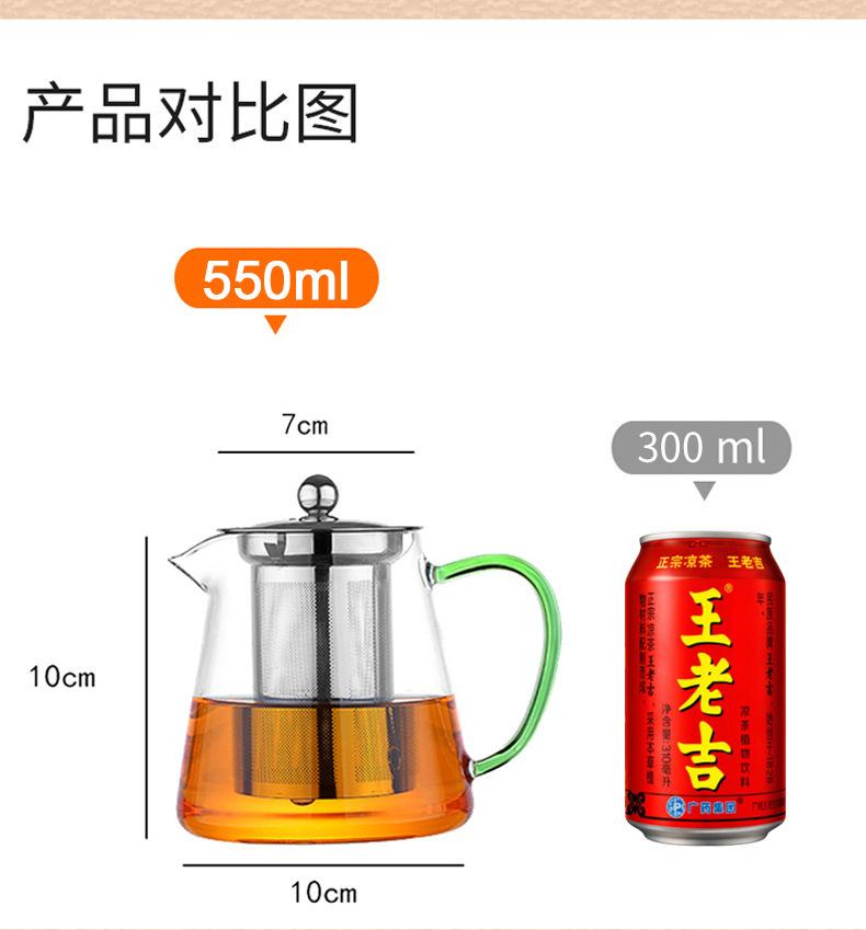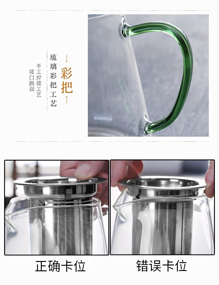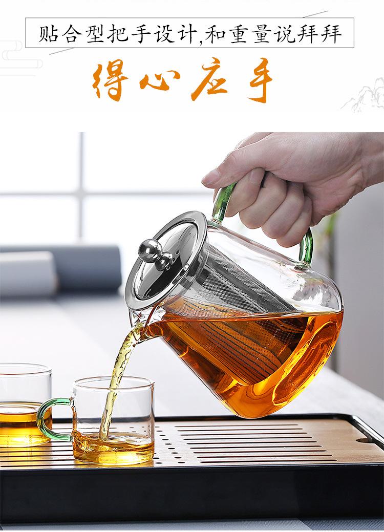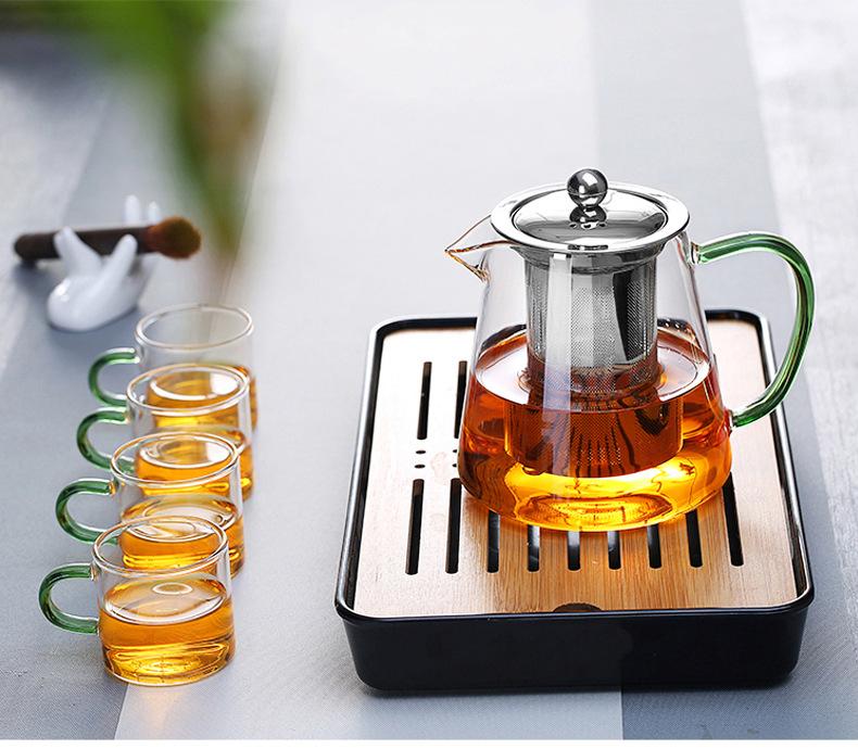 Tetera de vidrio resistente al calor transfronteriza, tetera de borosilicato alto, revestimiento de acero inoxidable transparente, tetera de color resistente a altas temperaturas