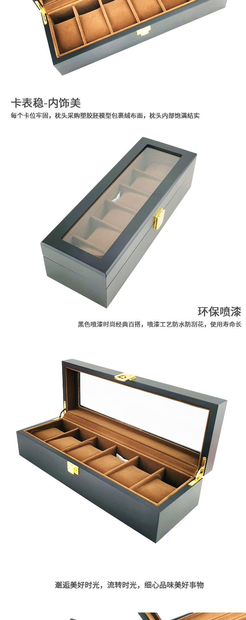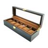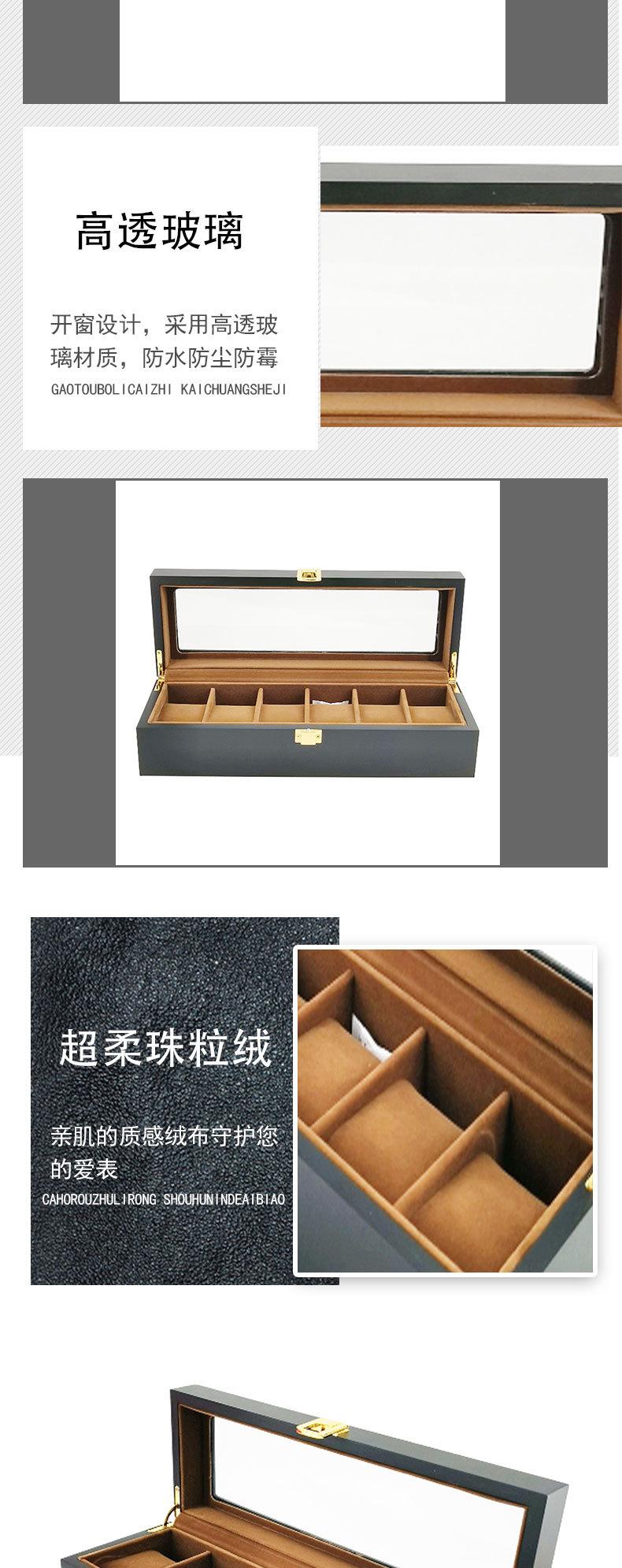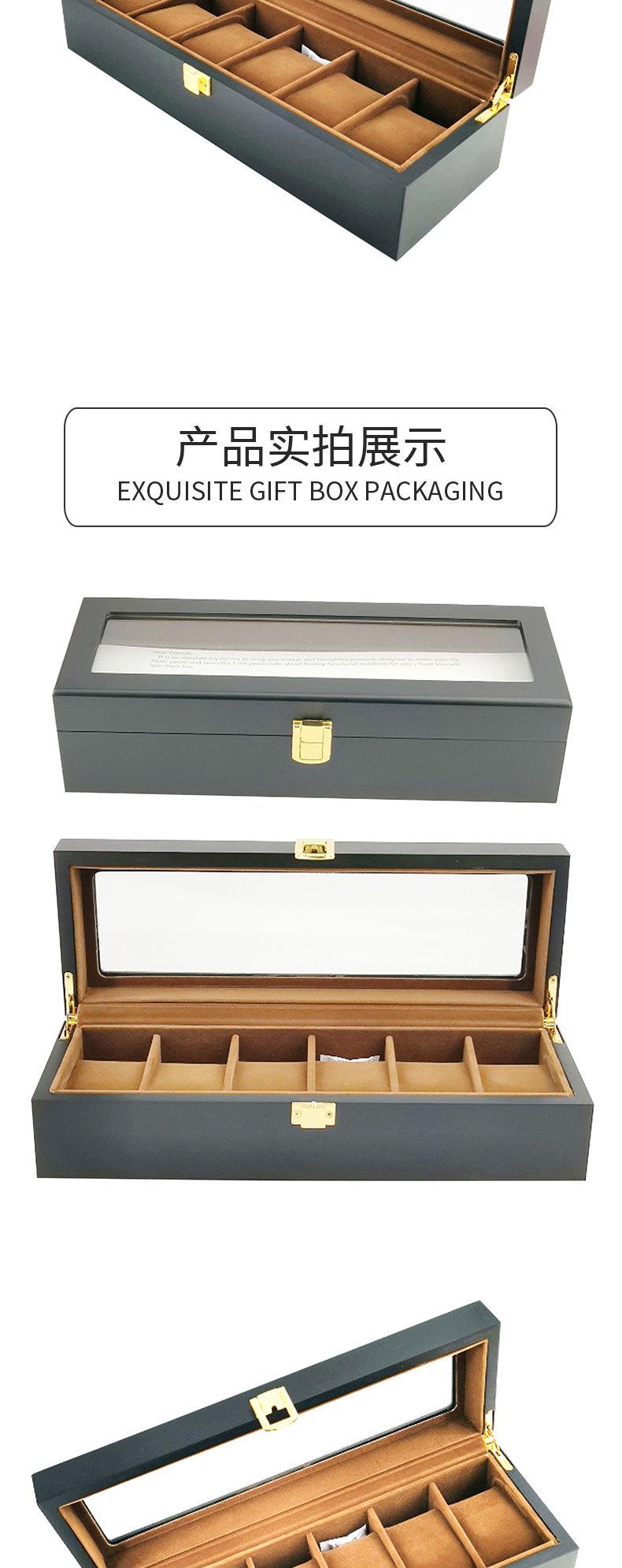 Caja de reloj de pintura mate negra de 6 piezas de moda europea y americana, caja de exhibición de ventana de reloj de mostrador de alta gama con punto de acceso