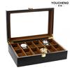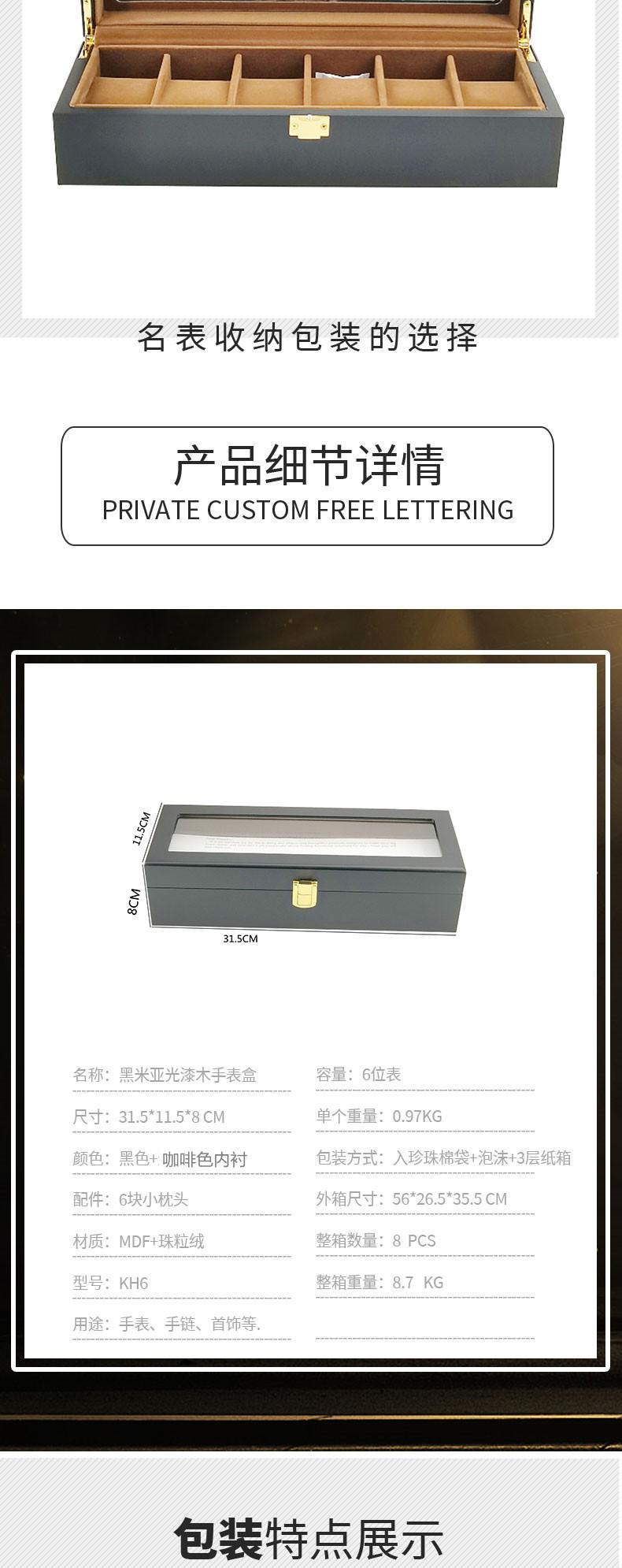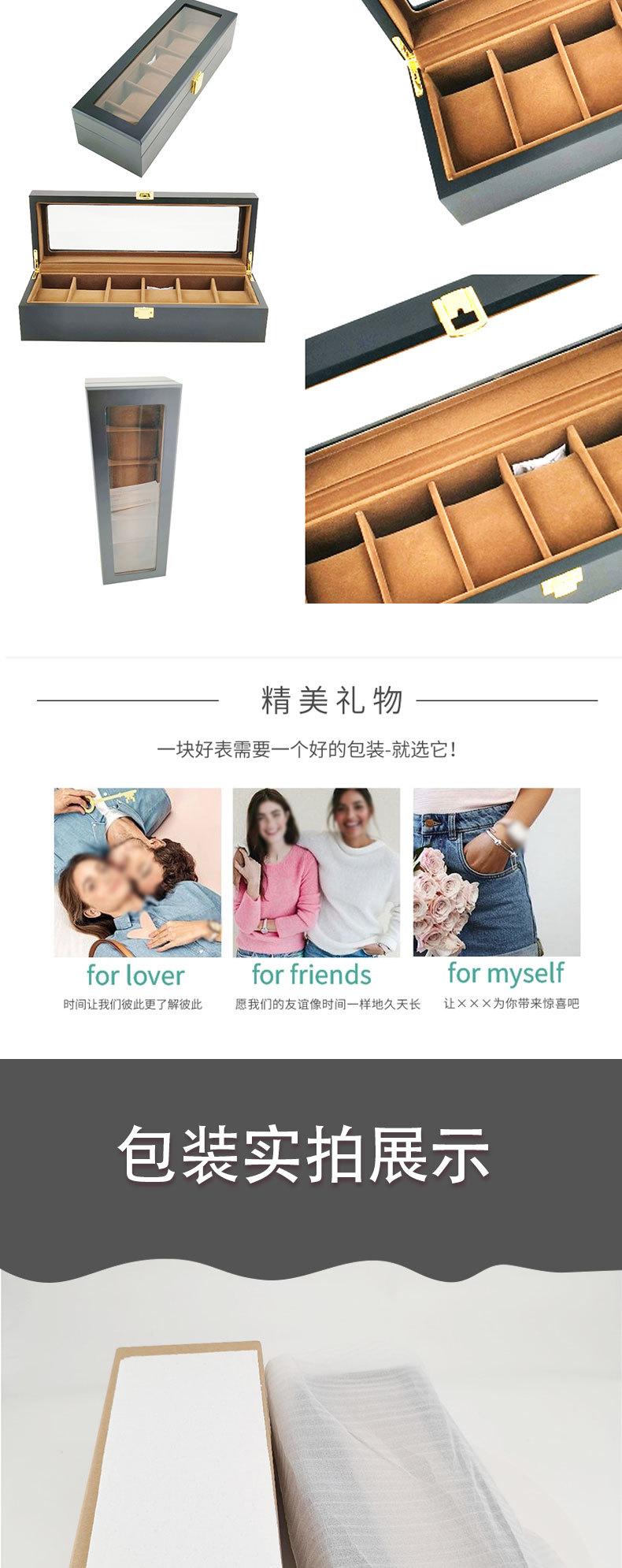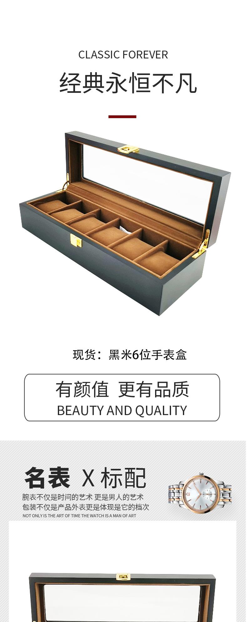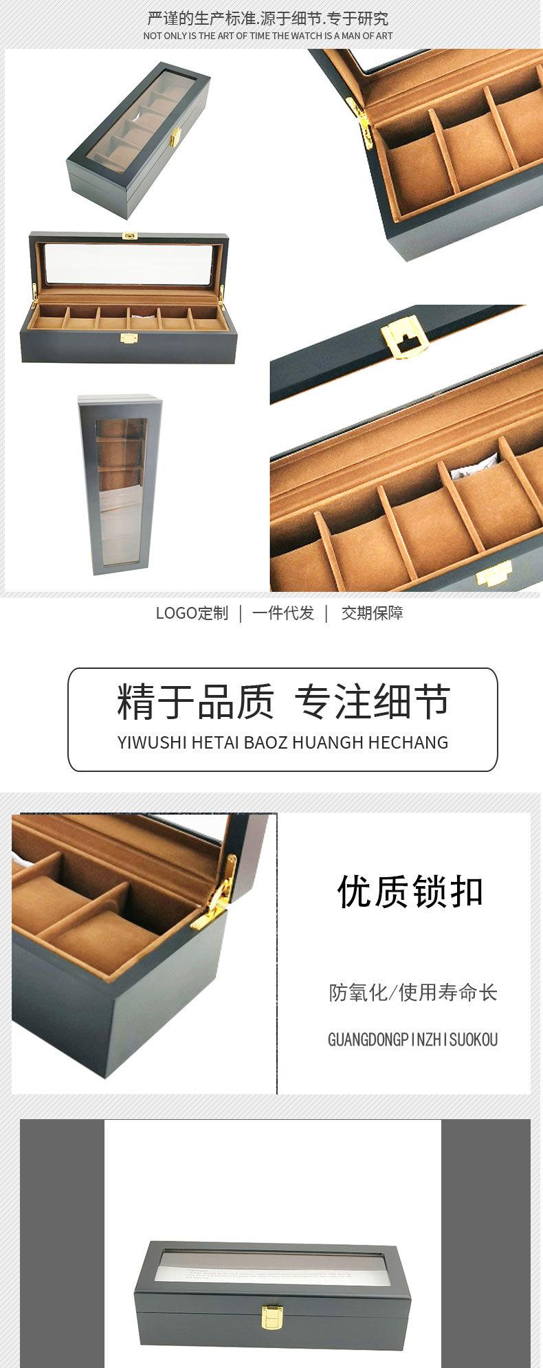 Caja de reloj de pintura mate negra de 6 piezas de moda europea y americana, caja de exhibición de ventana de reloj de mostrador de alta gama con punto de acceso