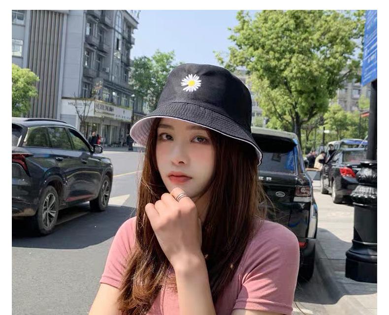 Sombrero de pescador reversible con margaritas para mujer primavera y verano estilo coreano nuevo sombrero para el sol sombrero de cuenca para hombre sombrero para el sol de crisantemo delgado