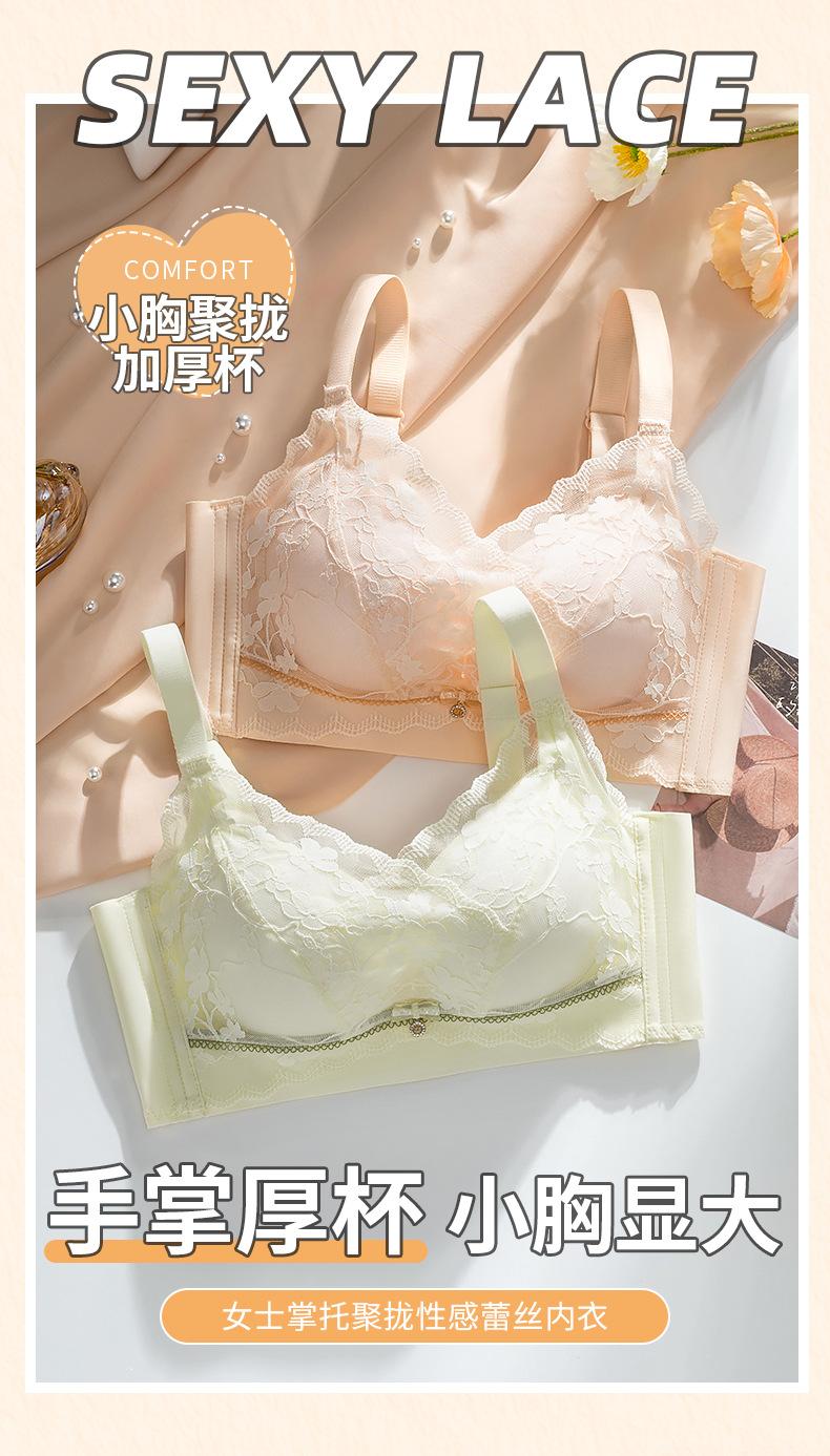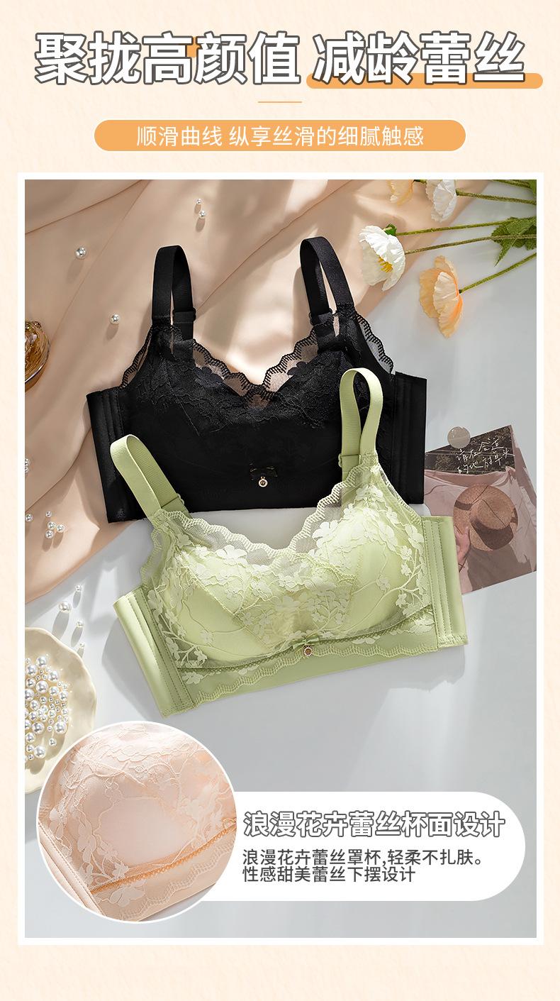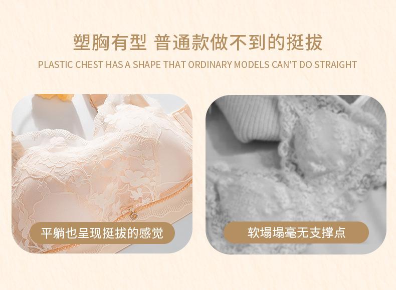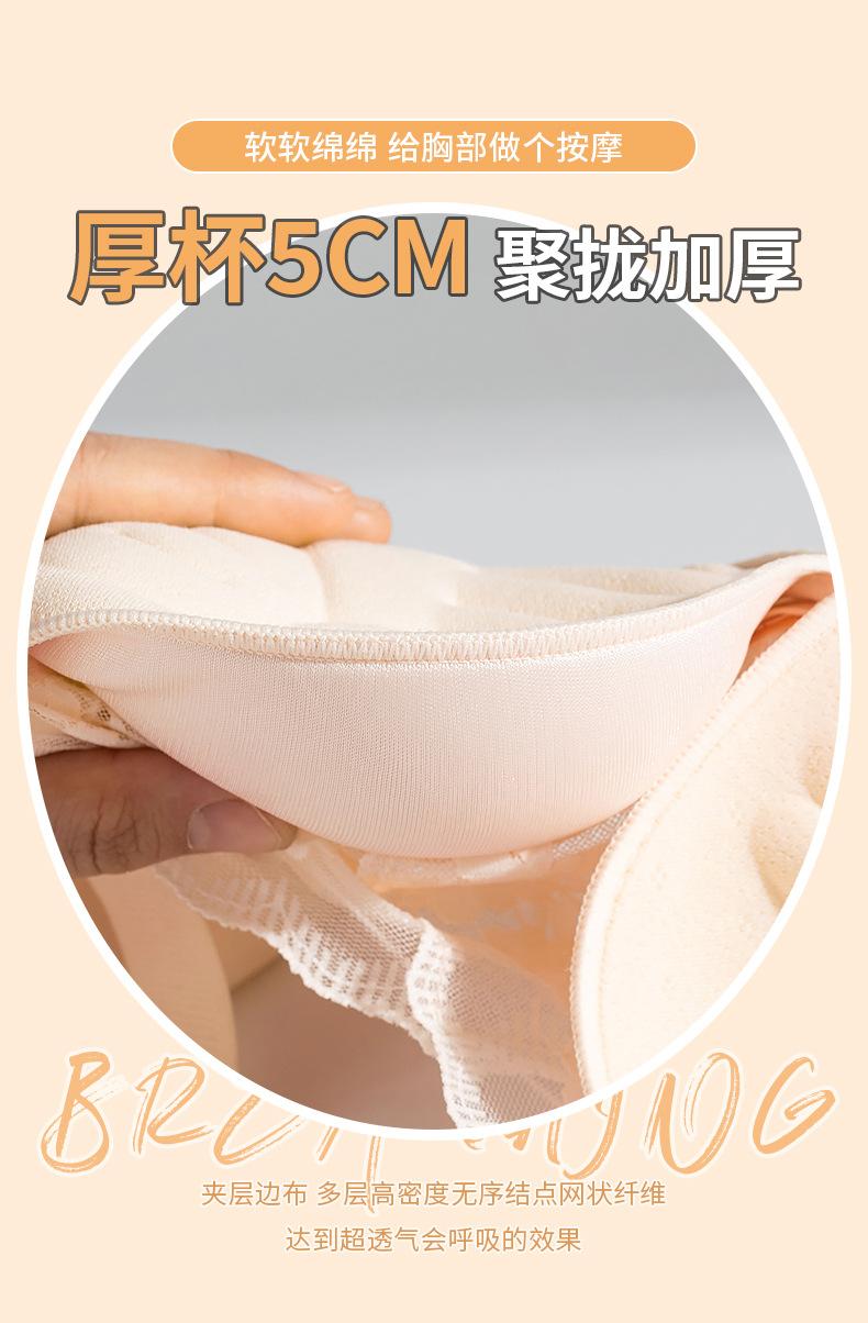 Sujetador súper grueso, pequeño, pecho plano, copa A, engrosado 5 cm, sin aro de acero, fruncido, encaje lateral ajustable, ropa interior para mujer