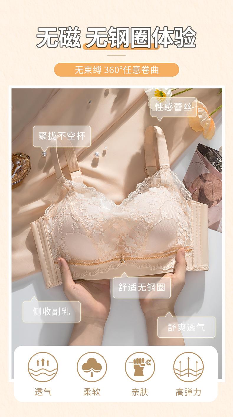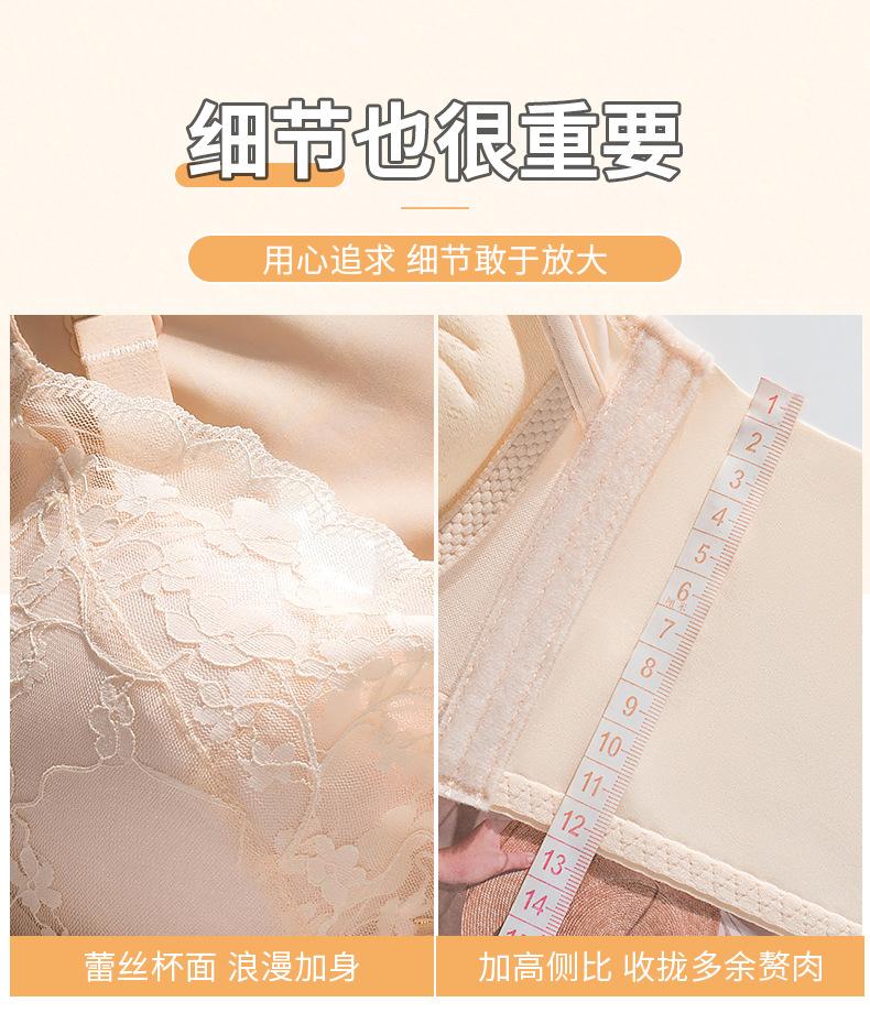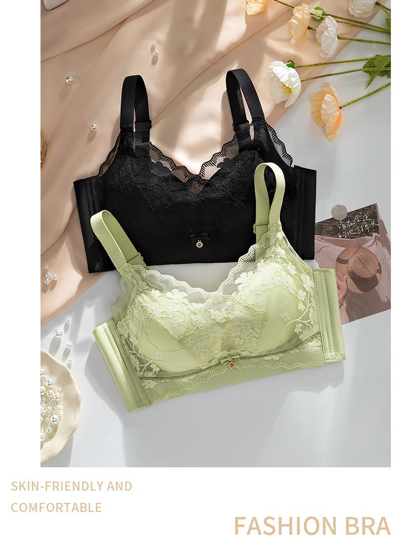 Sujetador súper grueso, pequeño, pecho plano, copa A, engrosado 5 cm, sin aro de acero, fruncido, encaje lateral ajustable, ropa interior para mujer
