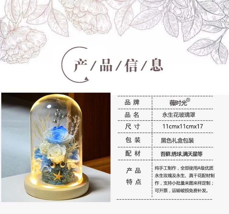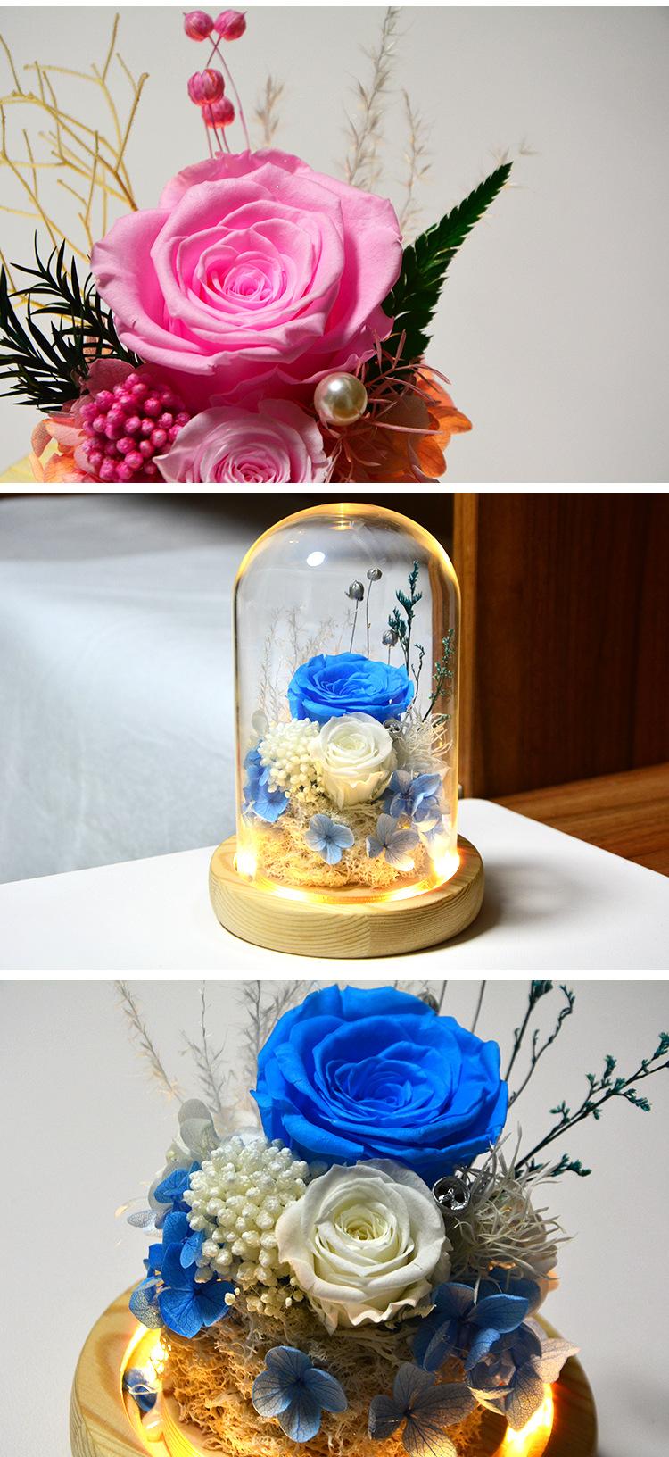 Flor Preservada Cúpula de Cristal Caja de Regalo Terminada Día de San Valentín Adorno de Rosa Seca Regalo de Navidad para Niñas Caja de Regalo