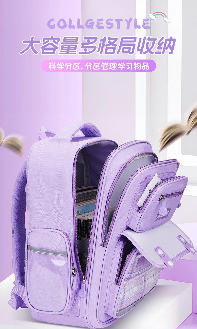 Nueva mochila escolar para estudiantes de primaria, para niñas, de gran capacidad, ligera, con protección para la columna vertebral y reducción de carga, para niños de 1.º a 6.º grado.