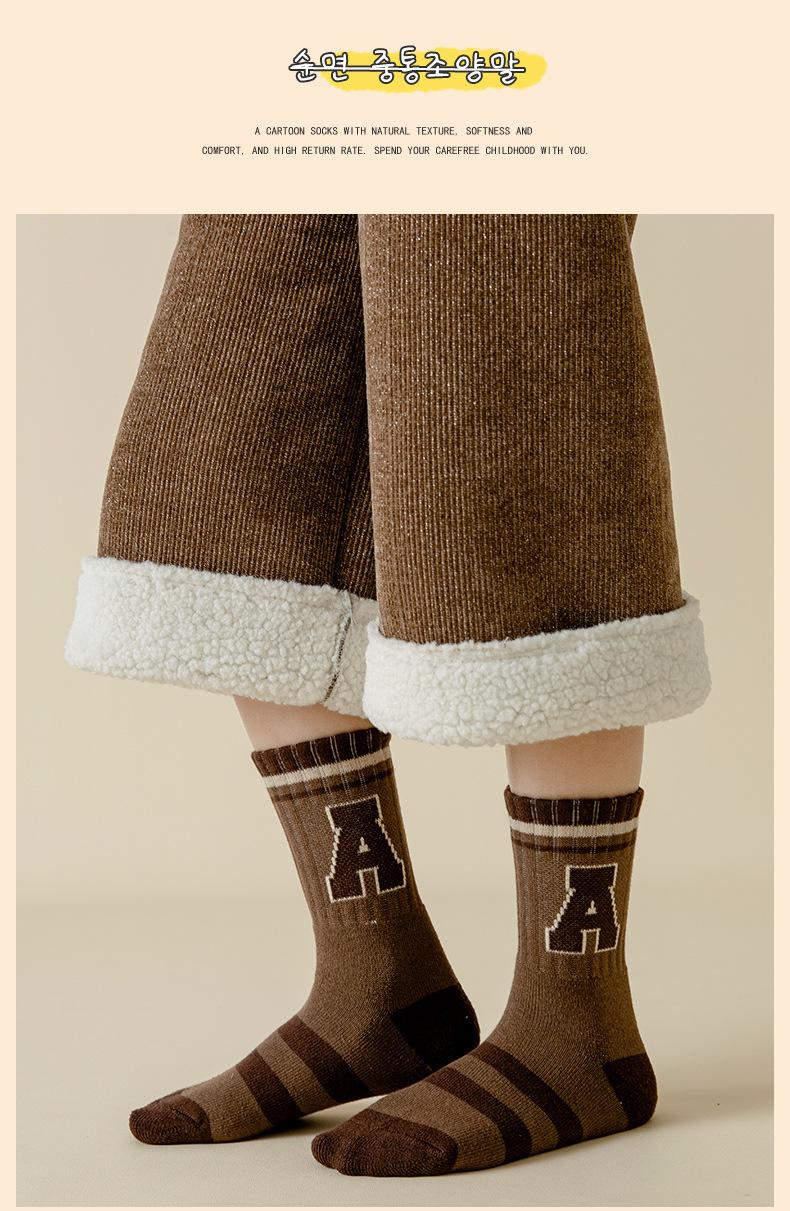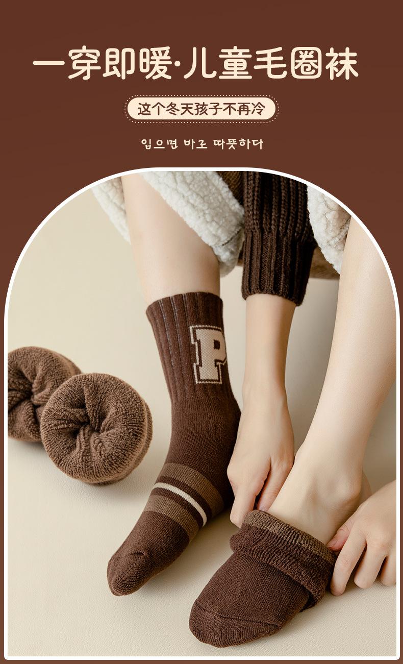 Calcetines para niños de algodón de clase A, de invierno, gruesos y cálidos, de felpa, hasta media pantorrilla, para niños medianos y grandes, con dibujos animados, para estudiantes, de otoño e invierno.