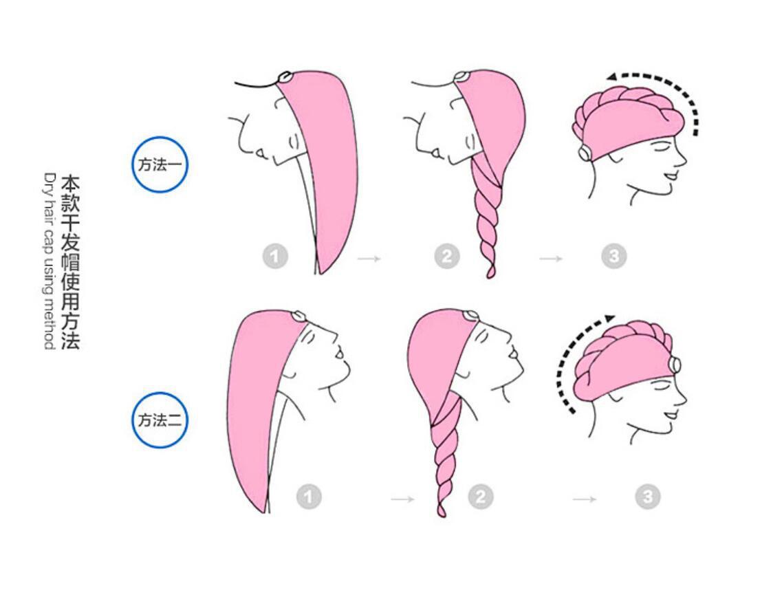2. Después de envolver el cabello con un gorro para cabello seco, use un secador de pelo para secar el cabello.