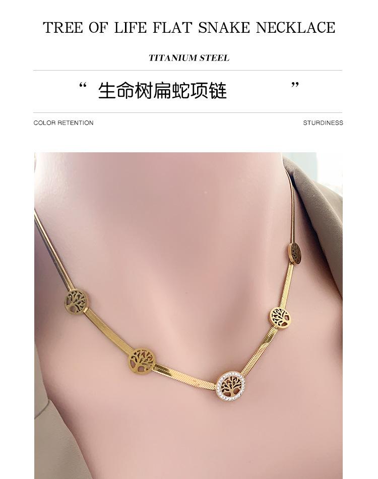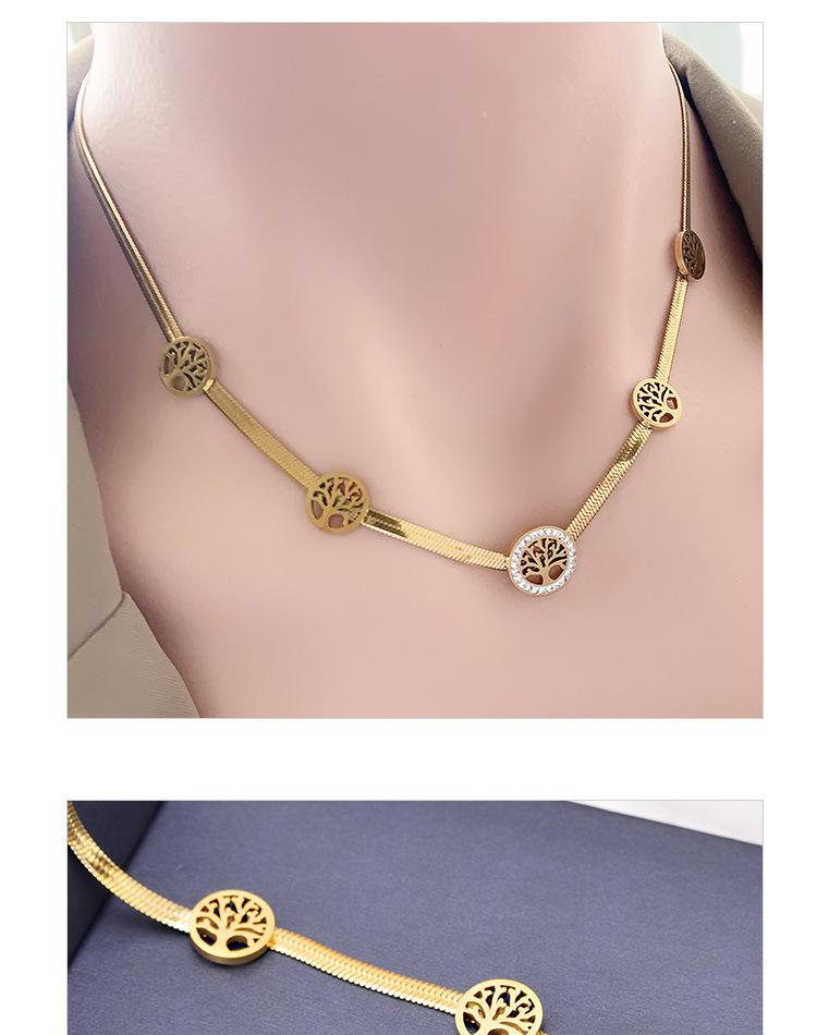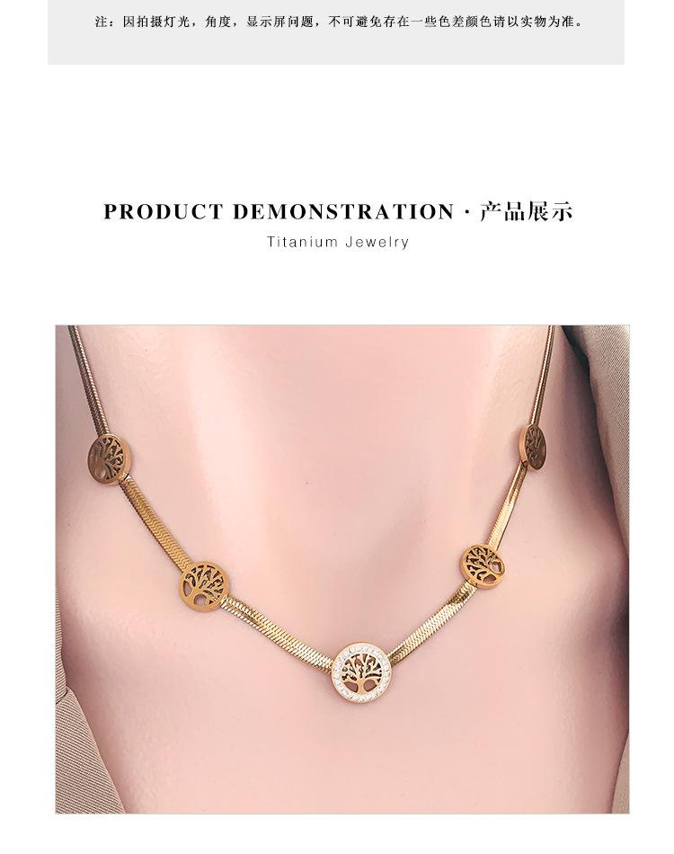 Collar con colgante de diamante de árbol de la vida galvanizado con preservación del color de acero de titanio y cadena de cuchillas de joyería transfronteriza europea y americana.