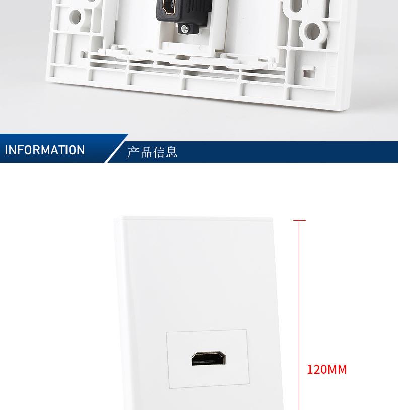 HDMI Puerto AV Audio Video Pared Placa Frontal Panel Cubierta Salida HD 080p Acoplador ABS;