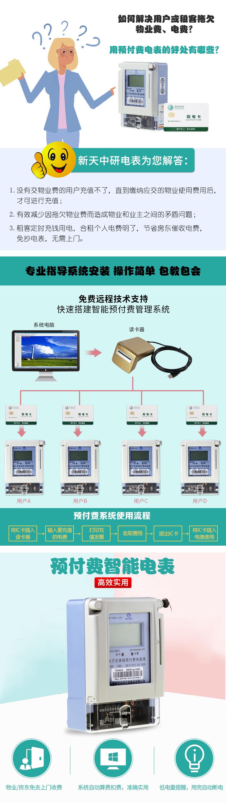Medidor eléctrico monofásico con tarjeta prepago Xintianzhongyan, medidor de cepillo con tarjeta IC de inducción RF, medidor inteligente de energía hidroeléctrica