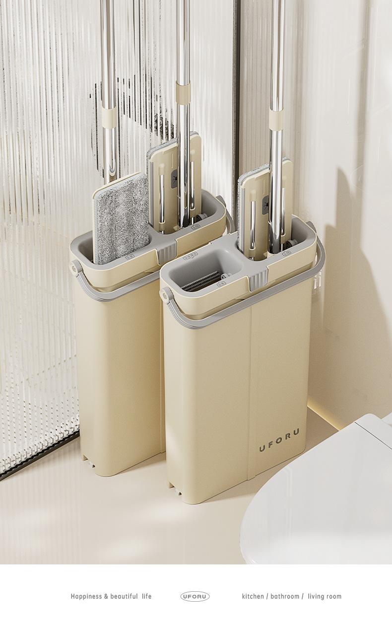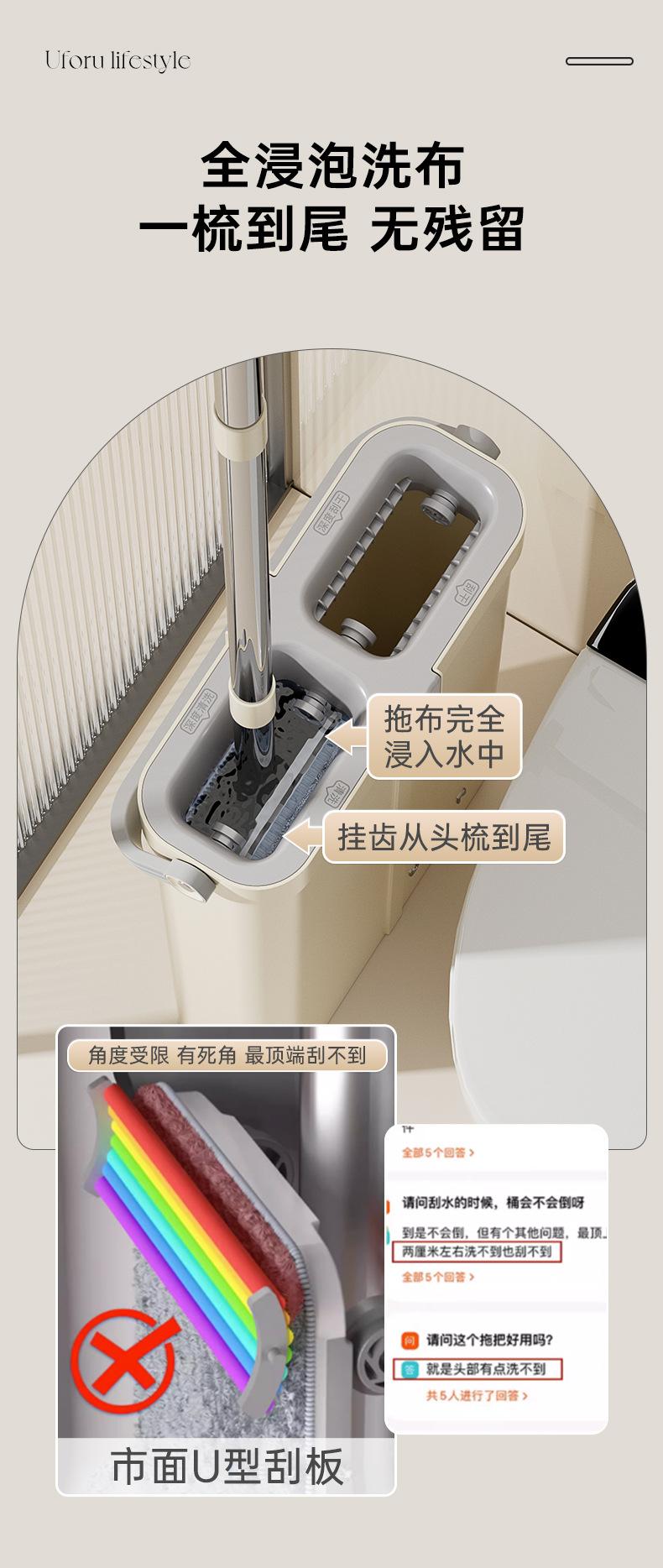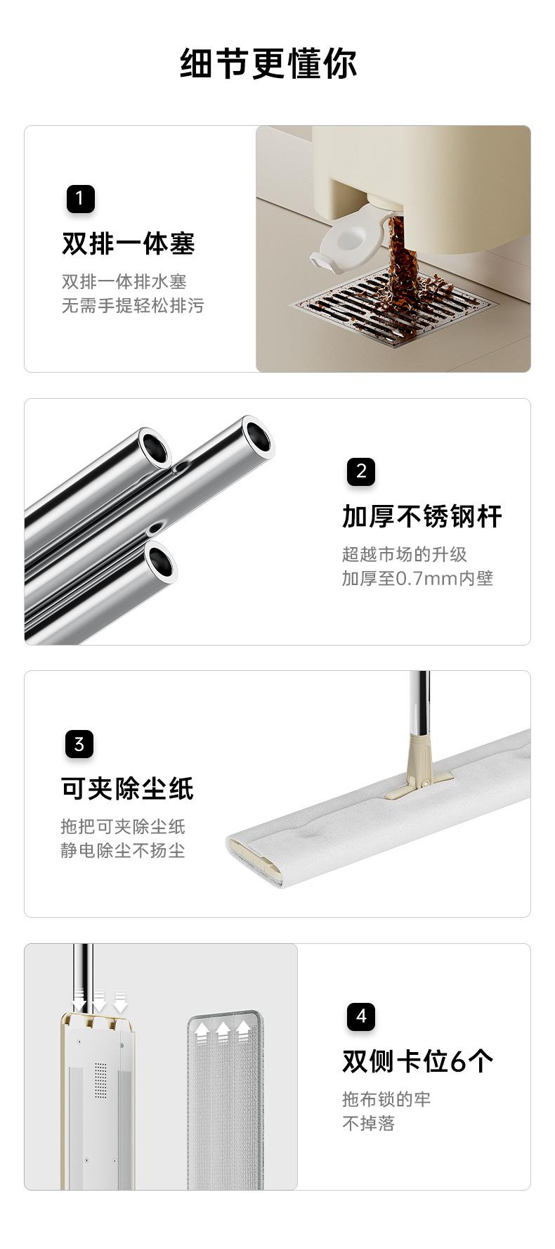 Trapeador doméstico de una sola pasada, trapeador manos libres, cubo raspador, trapeador grande, plano, húmedo y seco, artefacto de trapeador perezoso de doble uso