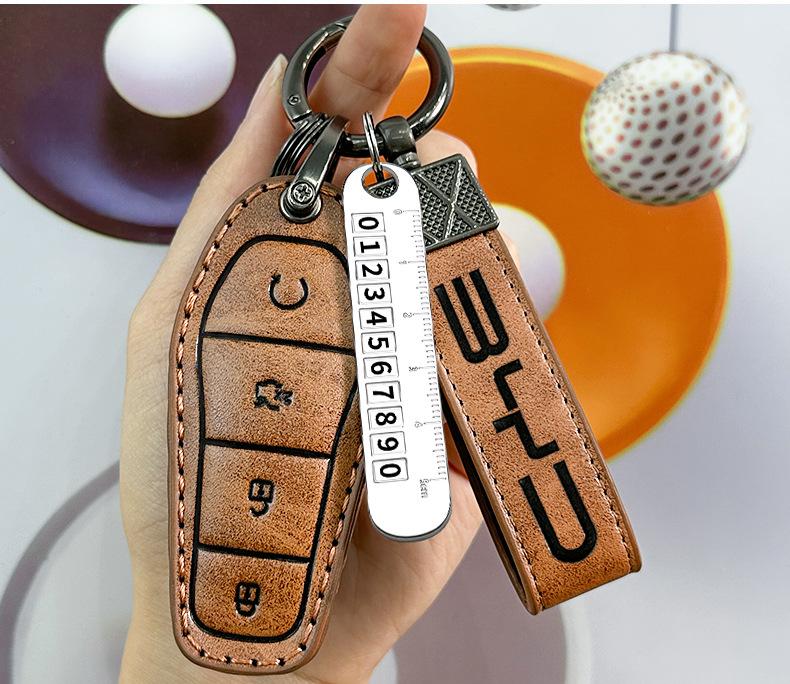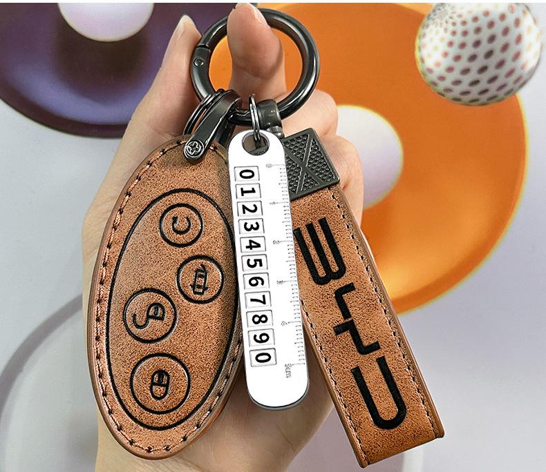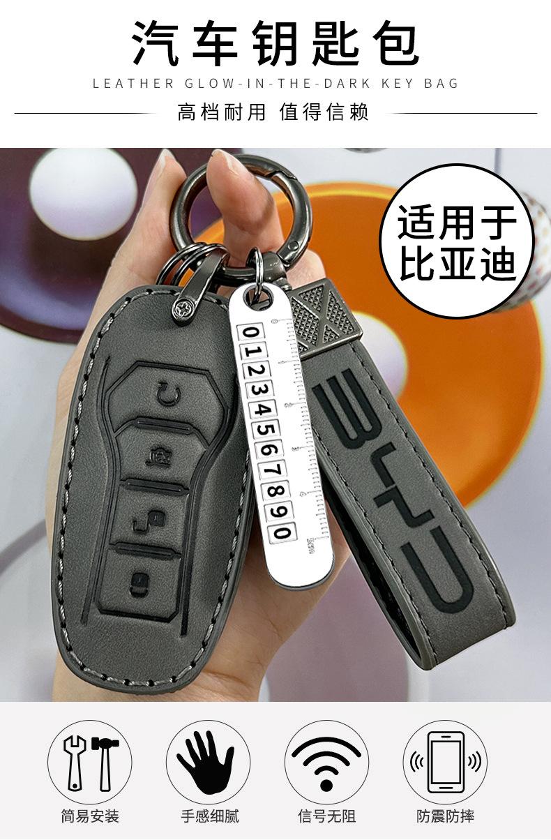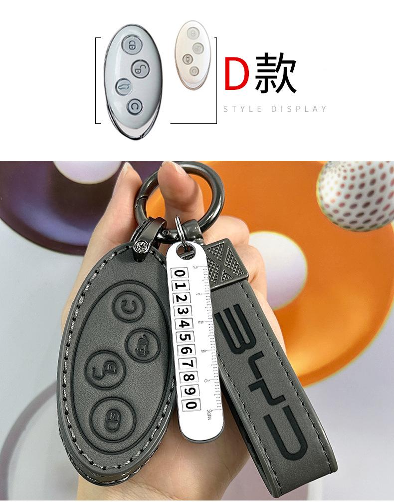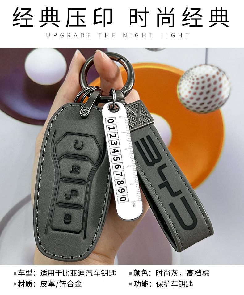 BYD D model [fashion Gray] Key case + car logo lanyard + metal ruler number plate, BYD D model [high-grade Bro...