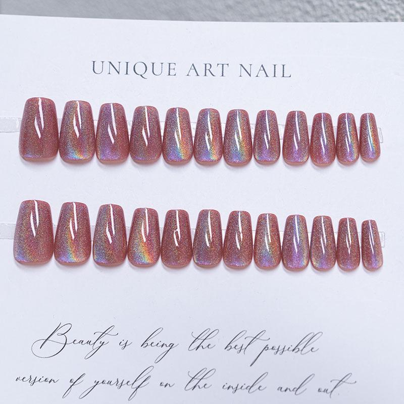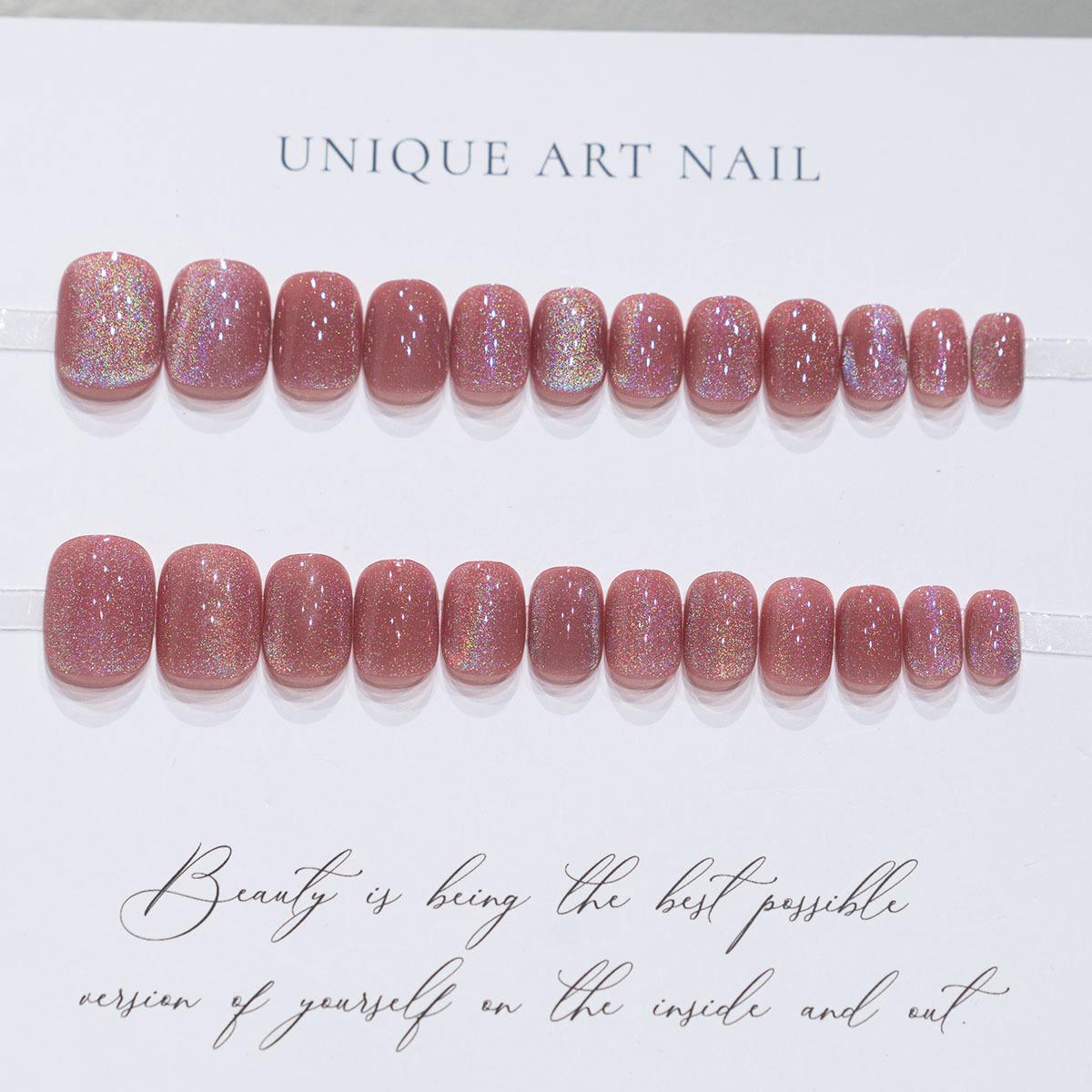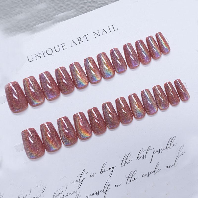 Pequeña hada usa manicura moda arcoíris ojo de gato parche de uña uñas removibles Producto terminado blanco al por mayor