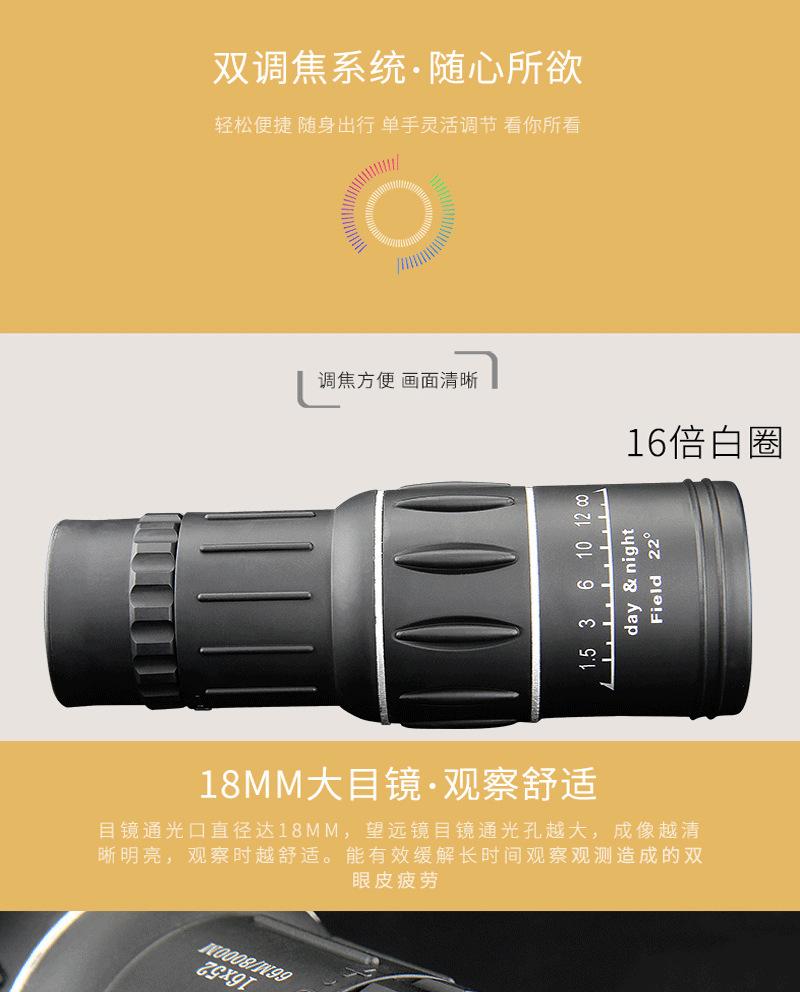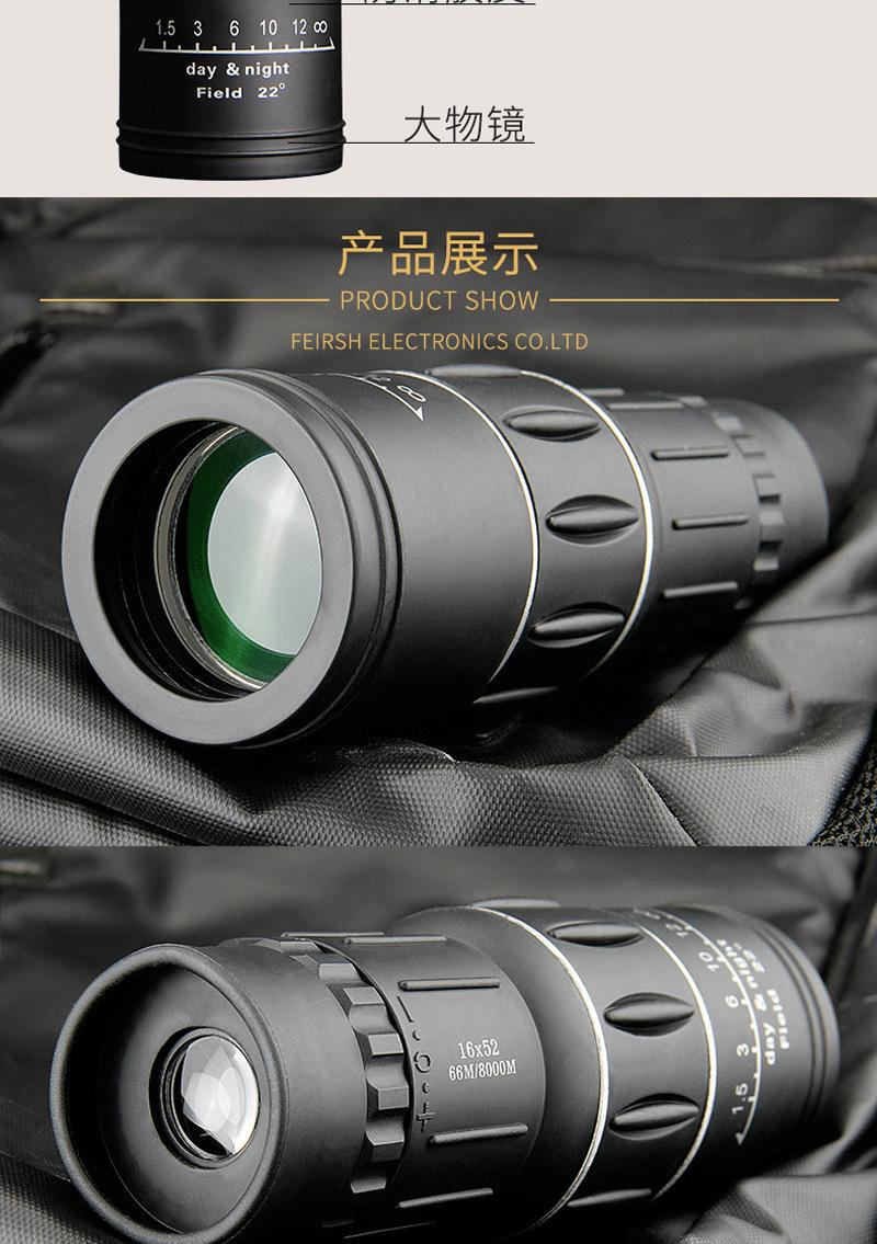 16X52 monocular telescope, 16X52 monoculars plus mobile phone clip plus tripod