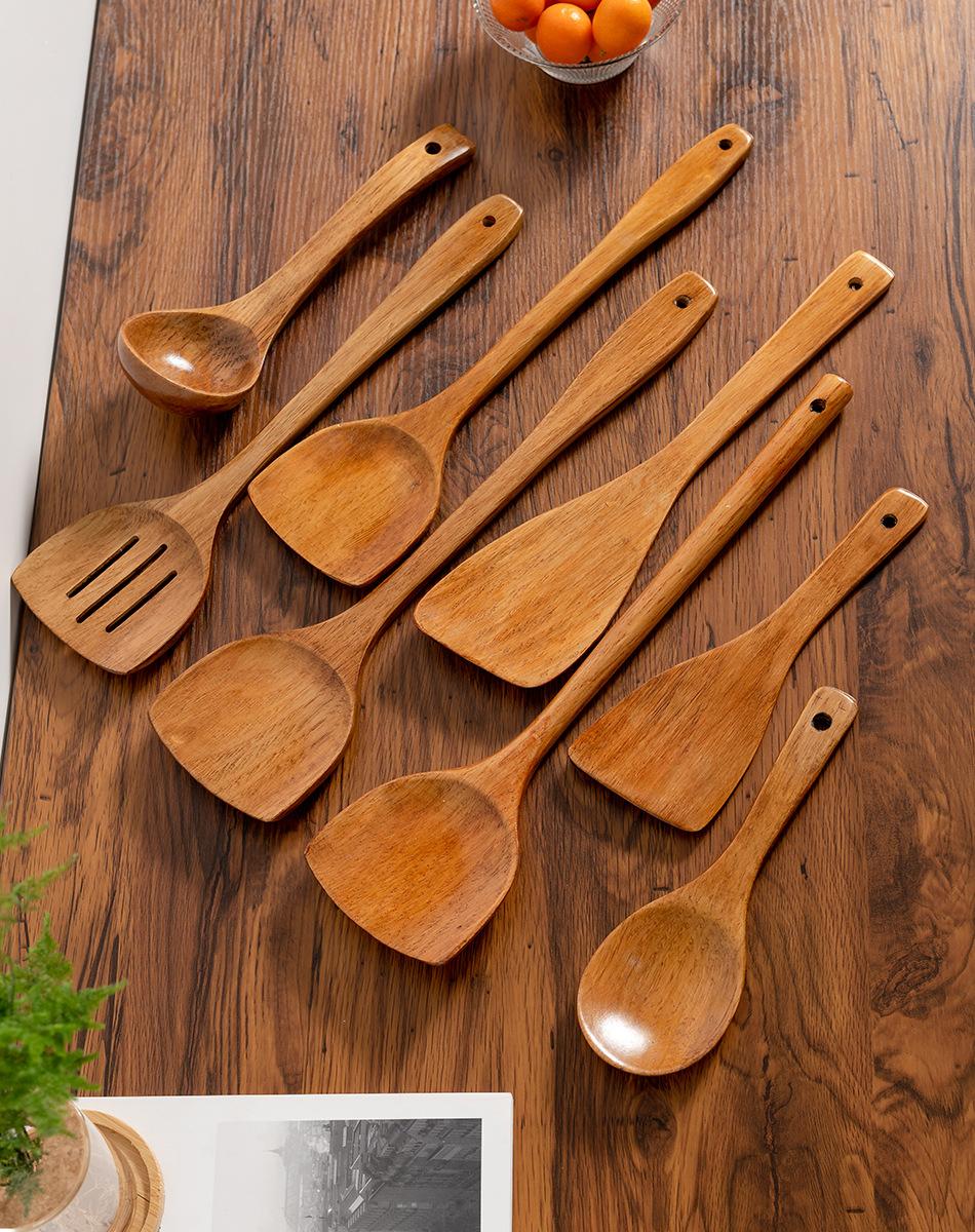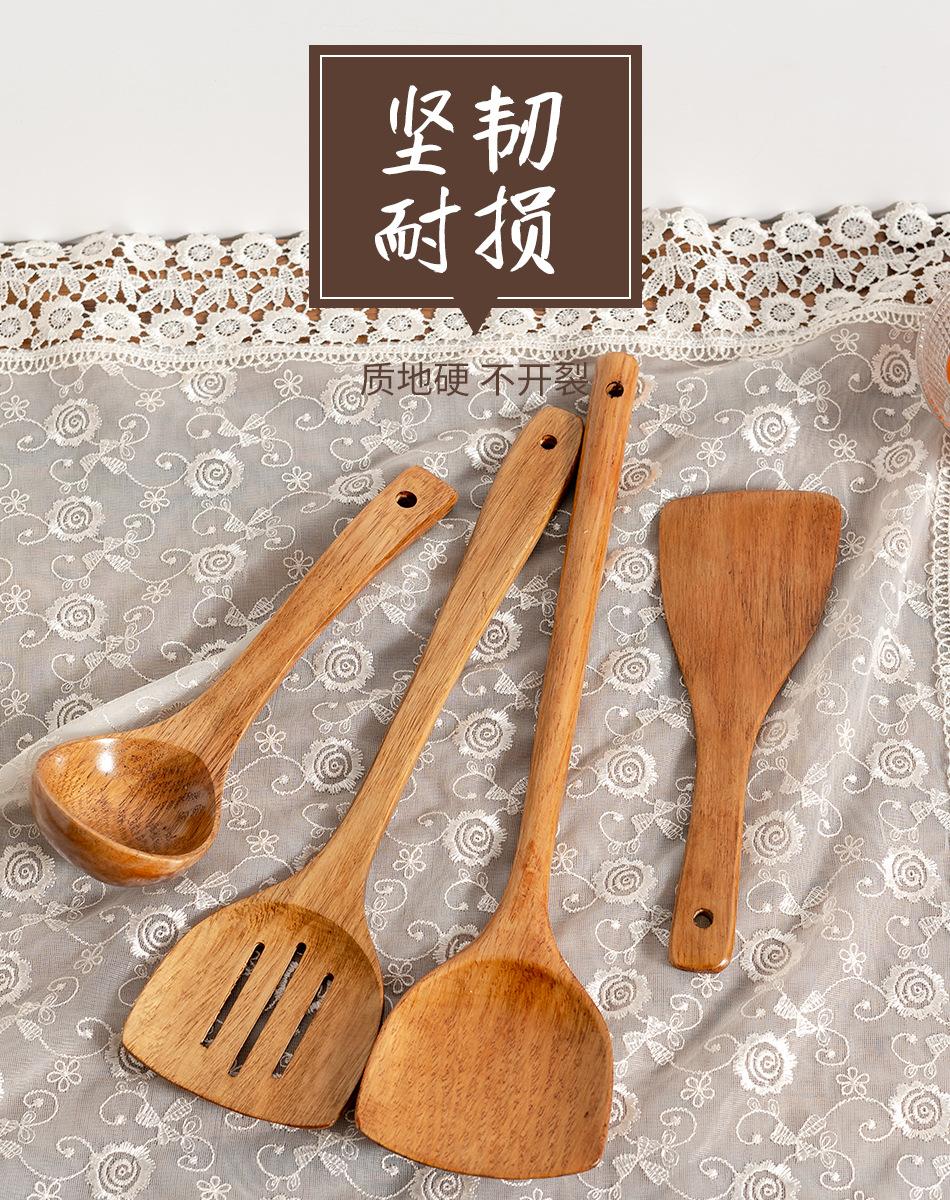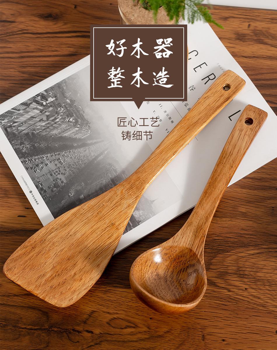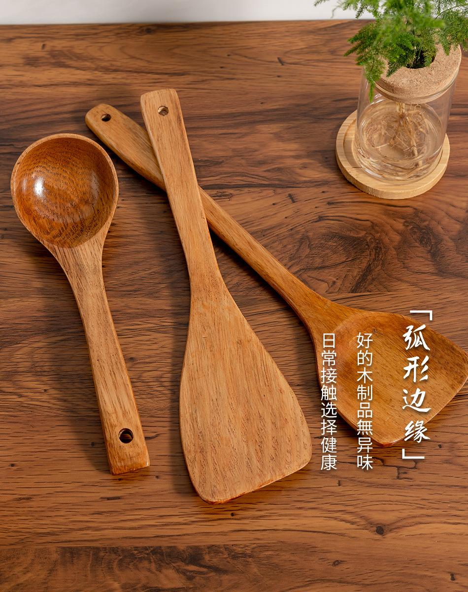 Juego de espátulas Kemu espátula de madera para sartén antiadherente espátula para cocinar espátula de madera cuchara para sopa cuchara pequeña para arroz espátula para arroz espátula de madera maciza