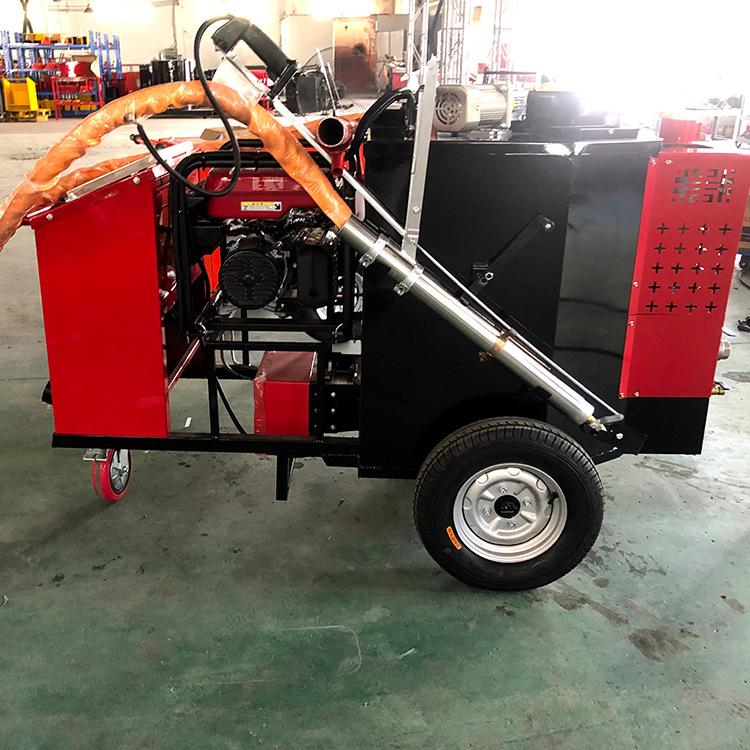 Se utiliza principalmente para la lechada asfáltica de grietas en pavimentos de asfalto o cemento. Es adecuada para asfalto común y material de relleno de juntas; el material de relleno de juntas se bombea a través de la bomba de asfalto, con caudal ajustable. La máquina de calafateo es una máquina de pavimento y se utiliza principalmente para el mantenimiento preventivo de problemas en el pavimento. Generalmente se utiliza junto con una ranuradora, una máquina de calafateo y un secador de pelo (o pulverizador térmico).