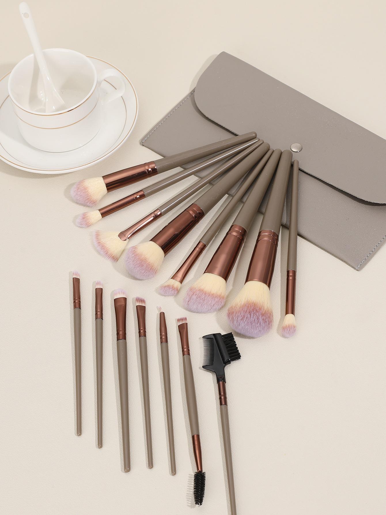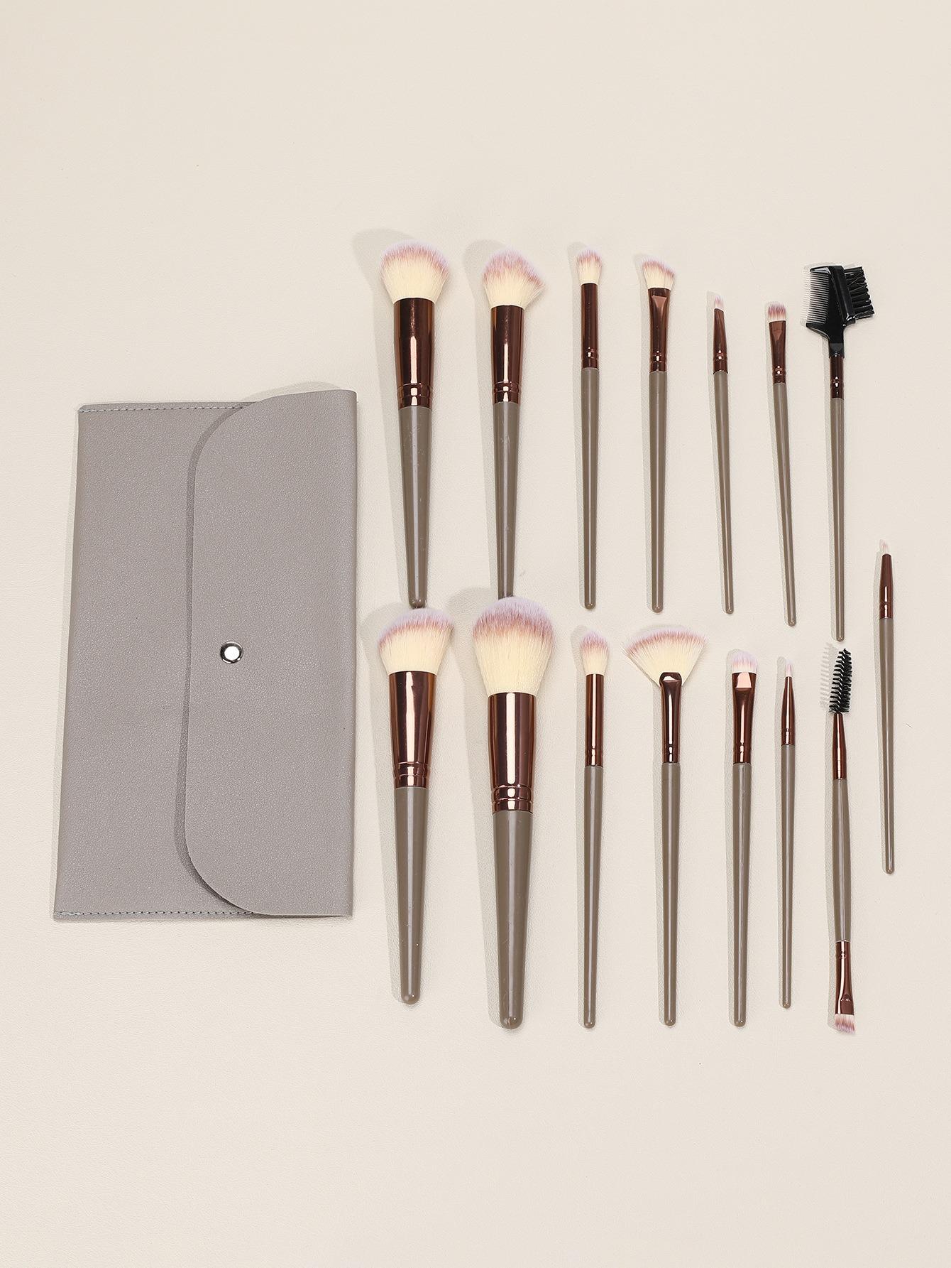 Juego de 15 brochas de maquillaje de pelo suave, para polvos sueltos, rubor, base, sombra de ojos, corrector, maquillaje, cejas, portátil, conjunto completo de herramientas