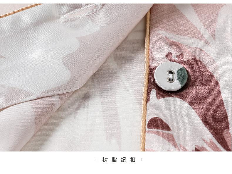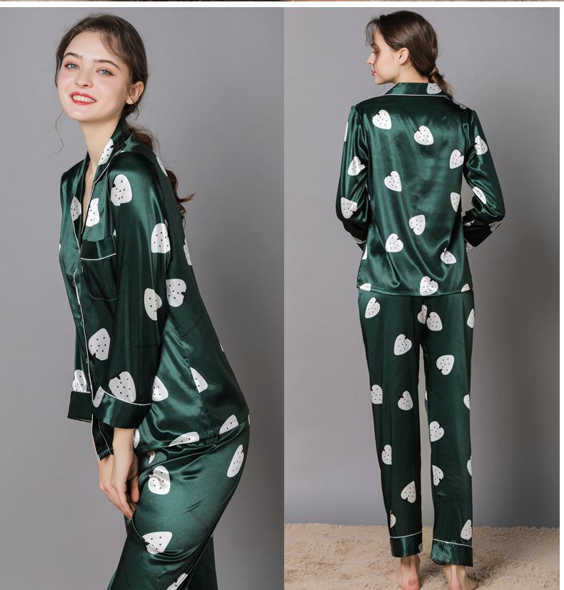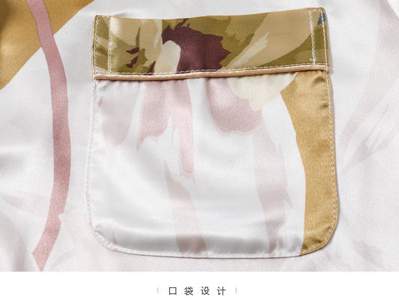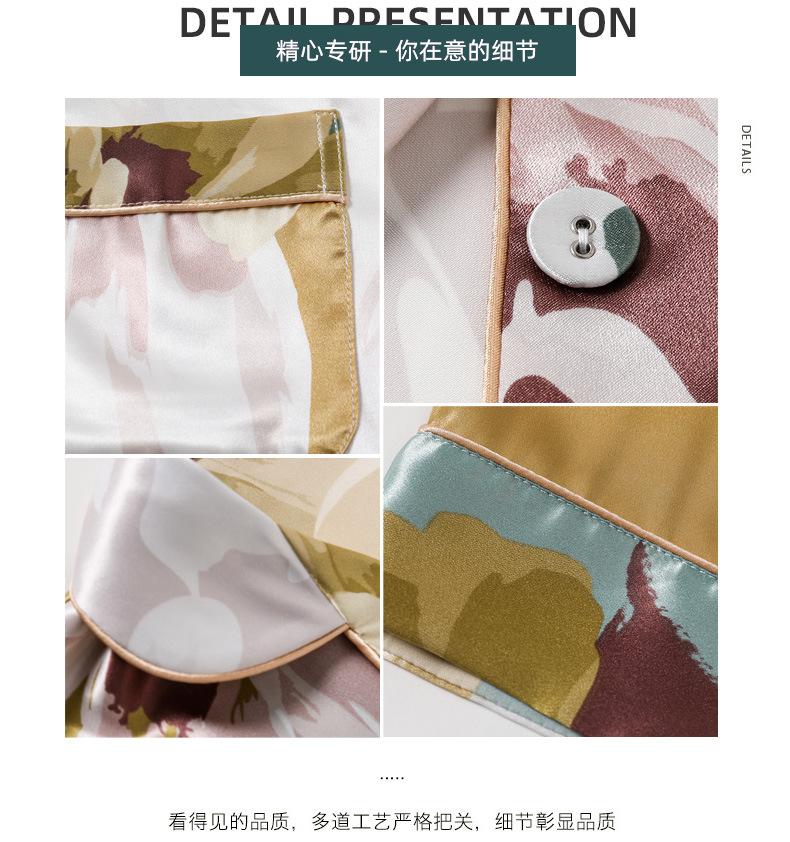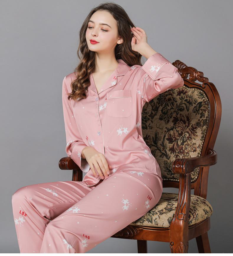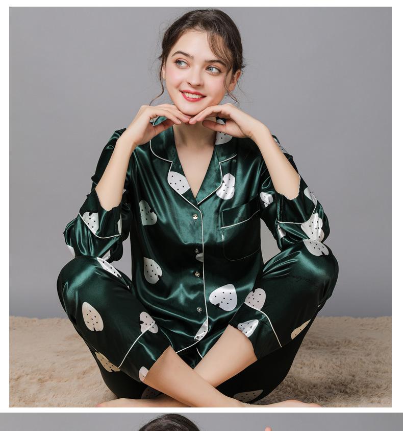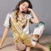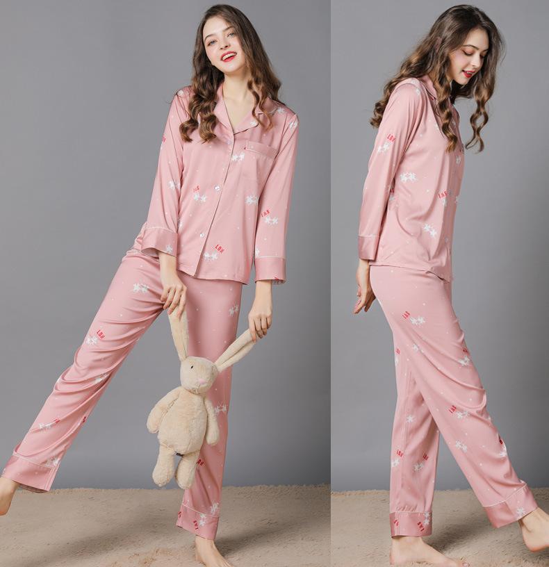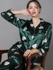 Pijama de seda de verano para mujer, traje de seda de hielo estampado de manga larga, cárdigan de seda de primavera, ropa informal fina para el hogar