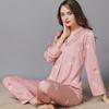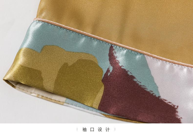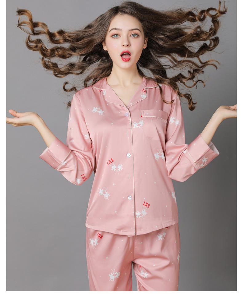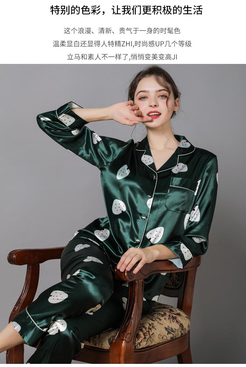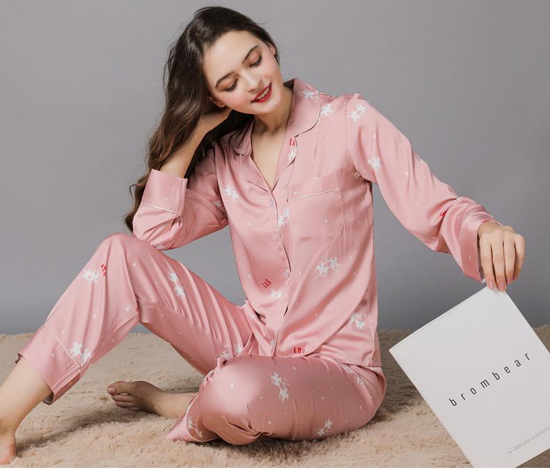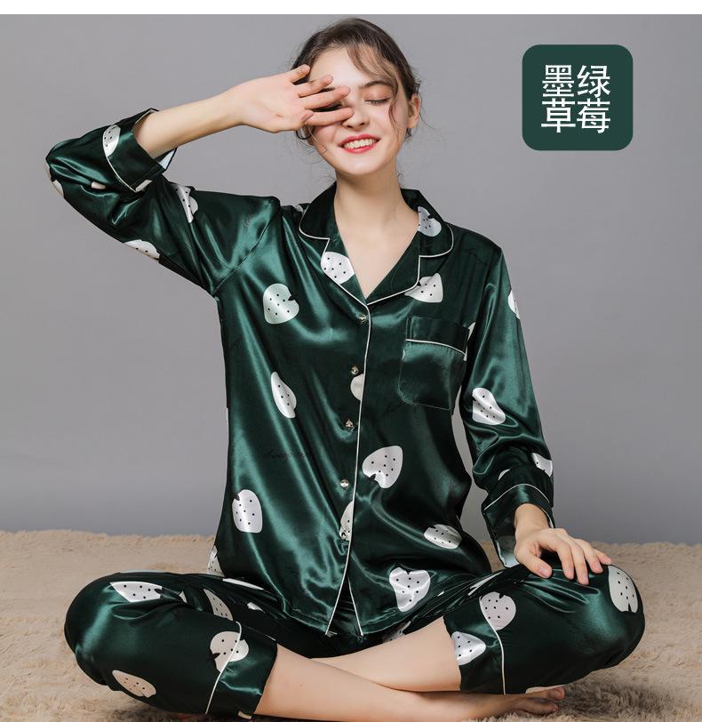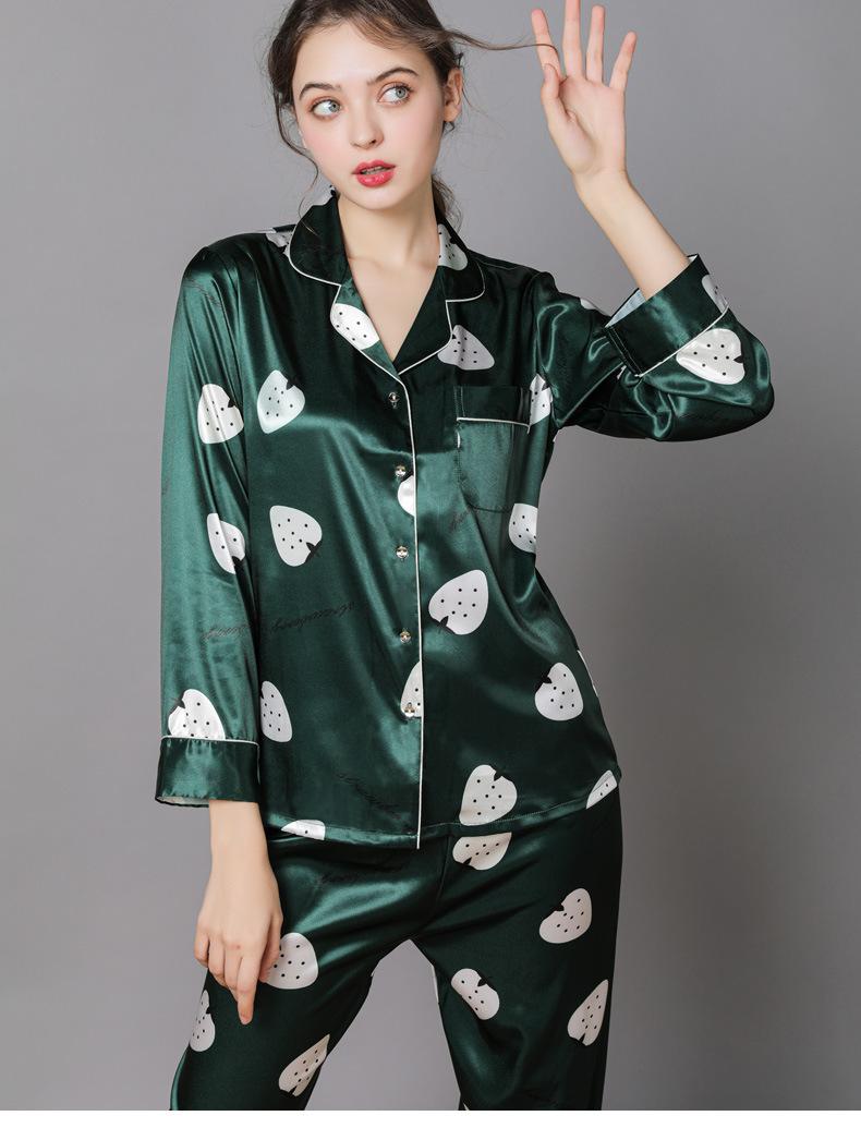 Pijama de seda de verano para mujer, traje de seda de hielo estampado de manga larga, cárdigan de seda de primavera, ropa informal fina para el hogar