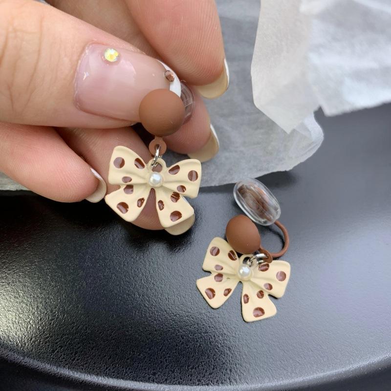 Clip para la oreja con lazo de lunares para mujer, temperamento de otoño e invierno, sin agujero en la oreja, clip para la oreja de bobina de mosquito, pequeño y exquisito, aretes de alta gama al por mayor