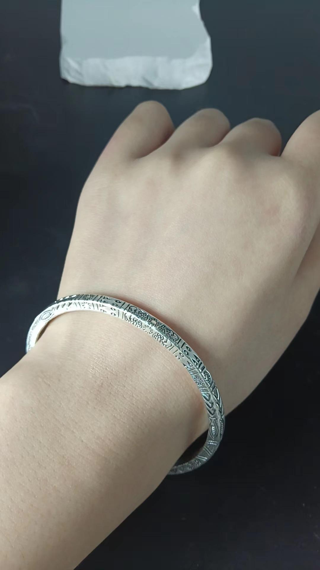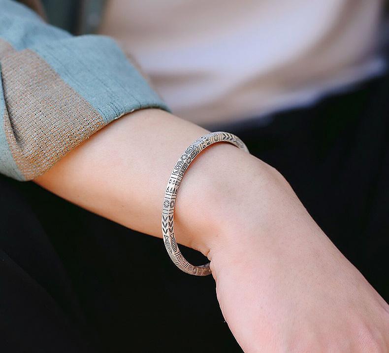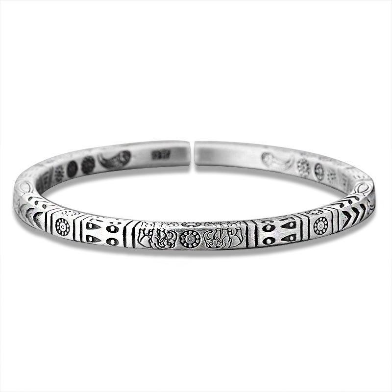Pulsera tótem retro bohemia transfronteriza, pulsera abierta sólida bañada en plata, diseño de nicho, pulsera de estilo étnico