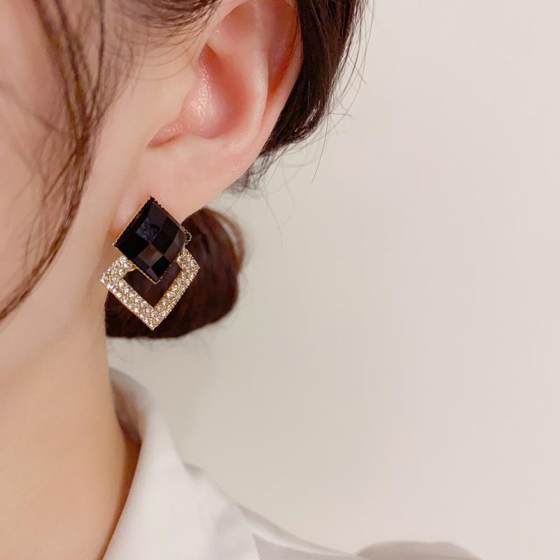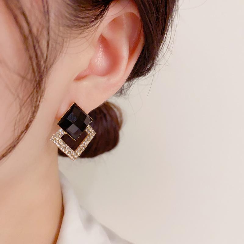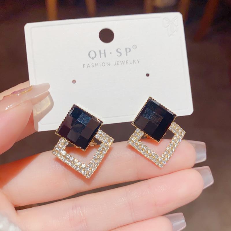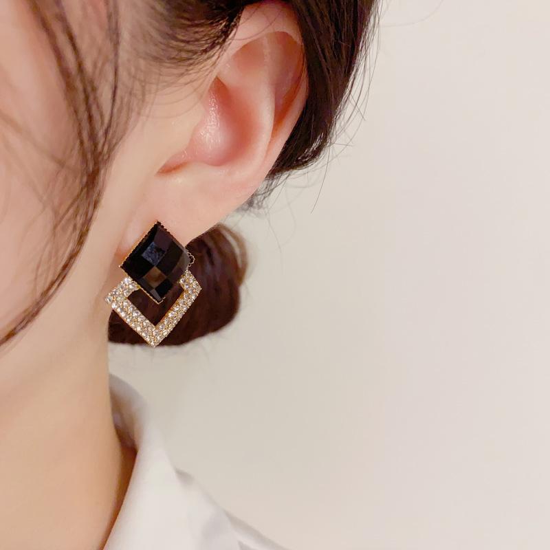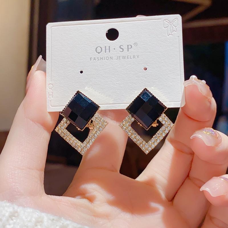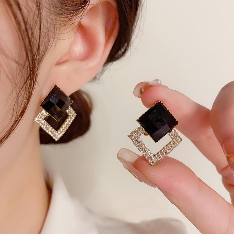 Pendientes de plata S925 con microincrustaciones de circonita negra y diamantes de imitación japoneses y coreanos, de diseño único, ligeros y elegantes para mujer.