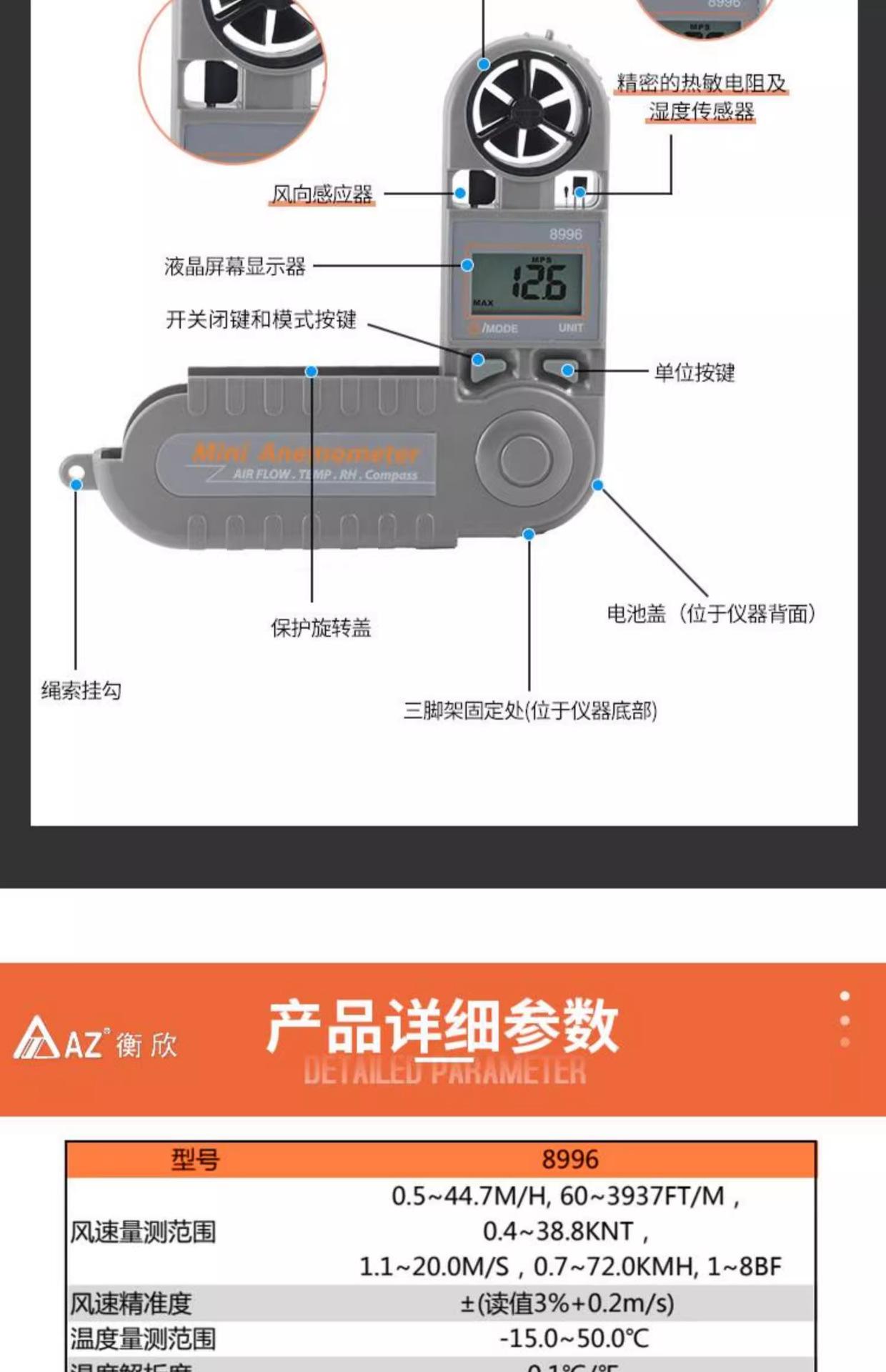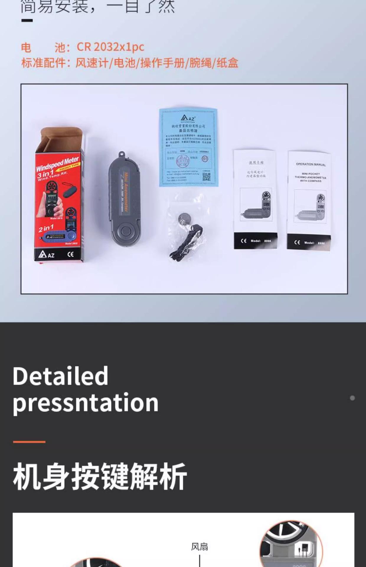 AZ8996 multi-functional wind direction measurement, AZ8910 multifunctional measurable altitude, AZ8909 multifu...