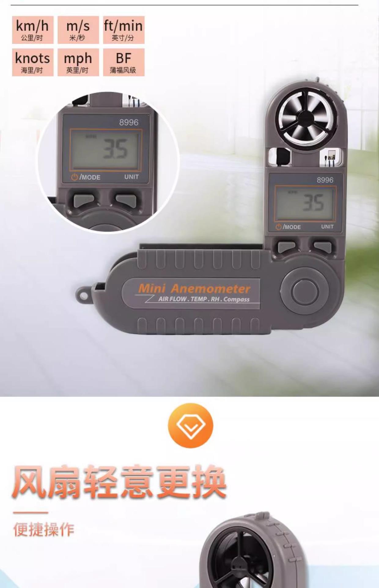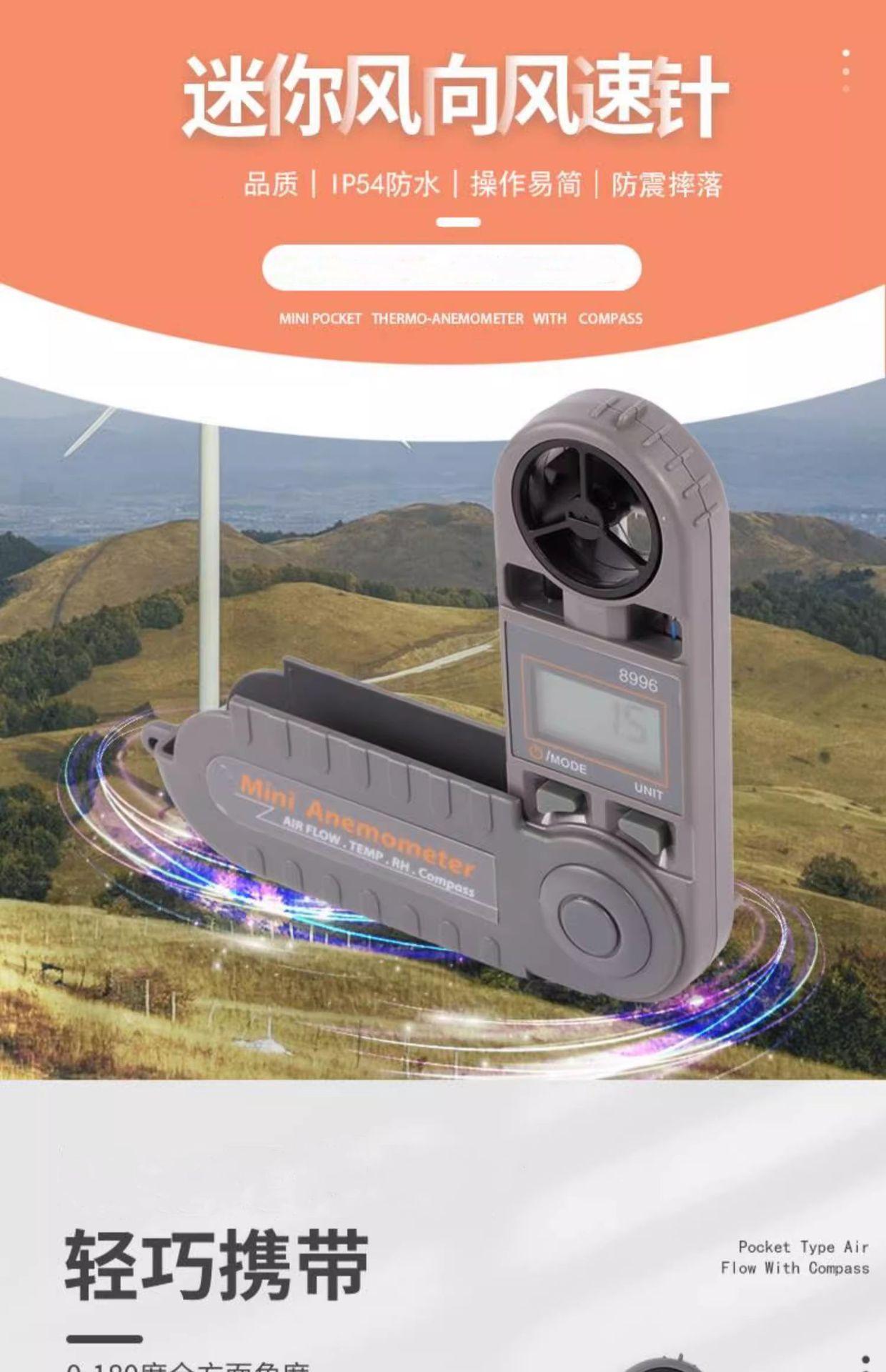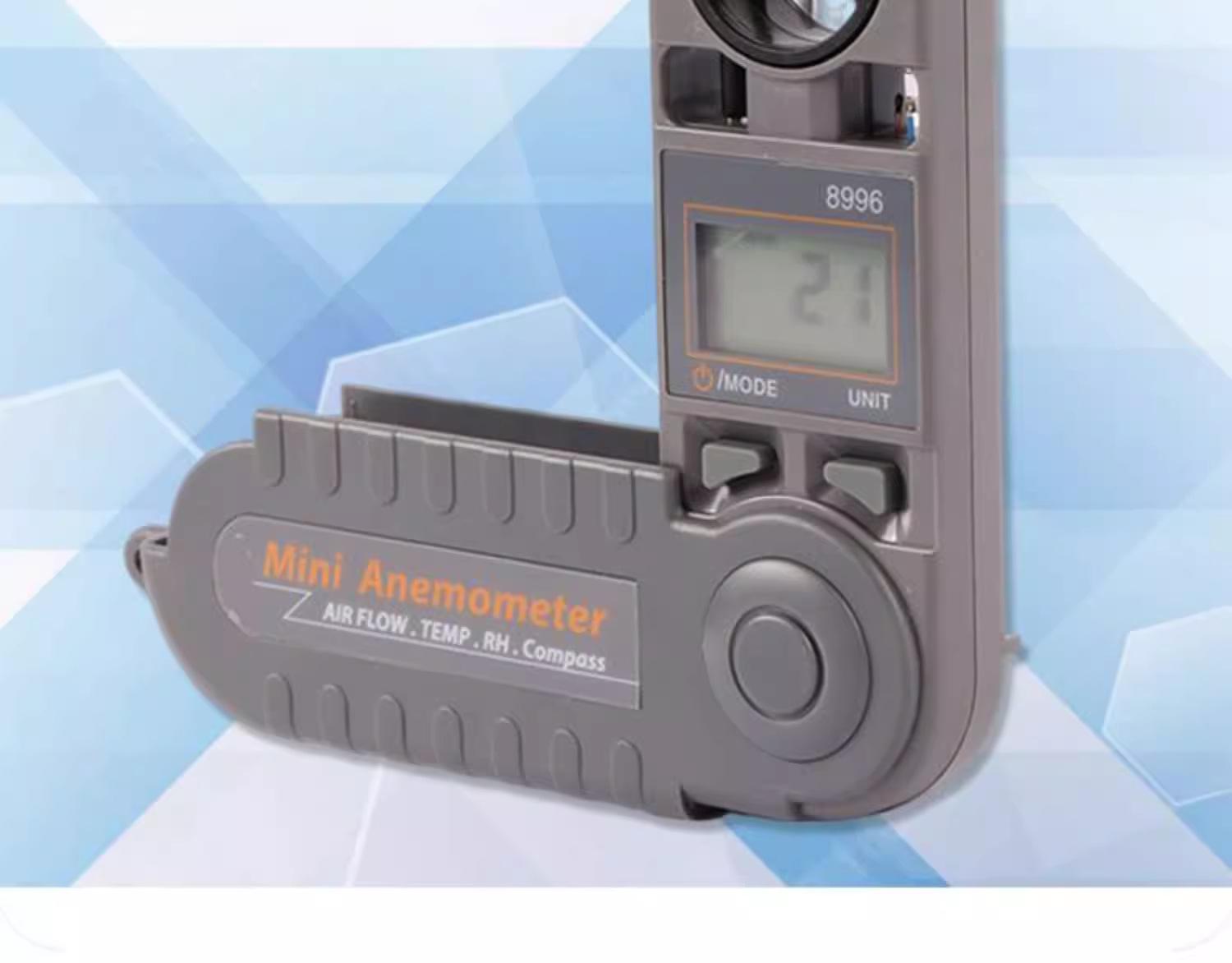 Anemómetro portátil AZ8996, instrumento multifuncional de medición de temperatura del viento, medidor de velocidad y dirección del viento plegable.