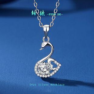 | Colgante de plata de ley 925 con diamantes de moissanita de 50 quilates, collar de moda para mujer con cisne, nuevo colgante de plata, cadena de clavícula, transmisión en vivo. |