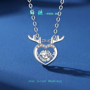 | Colgante elegante de moissanita para mujer, versión coreana, cadena de clavícula con forma de corazón palpitante de plata esterlina s925, collar de diamantes de imitación moderno y versátil. |