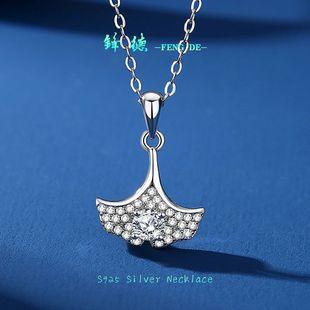 | Collar de hoja de ginkgo S925 para mujer con colgante de falda de diamantes de moissanita. Joya de plata sencilla y moderna para tu novia en San Valentín. |