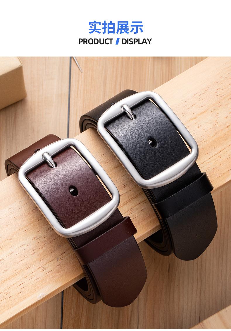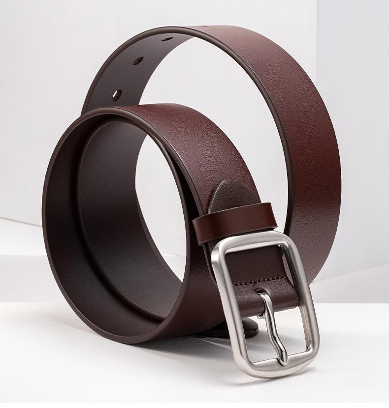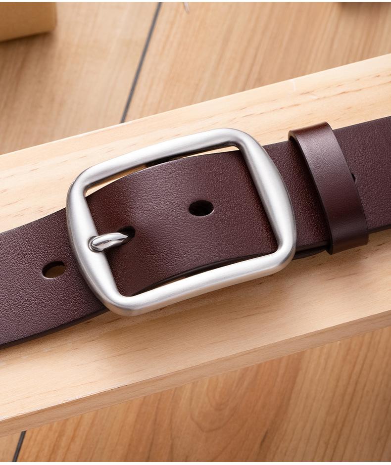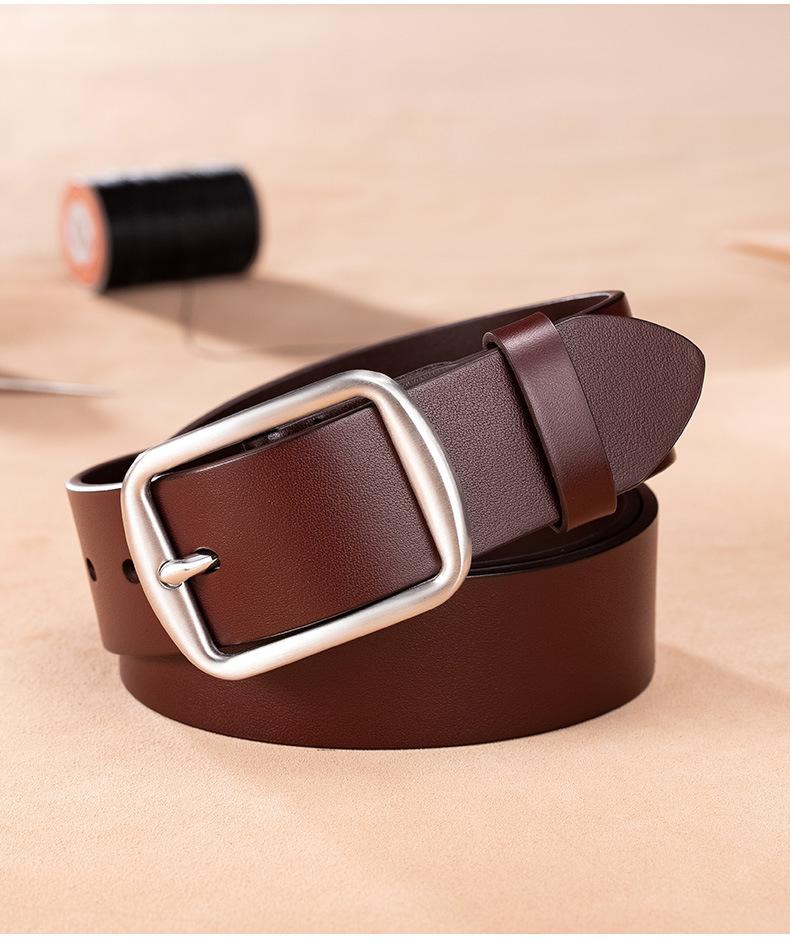 Cinturón de hombre de cuero genuino de primera capa, cinturón informal de hombre con hebilla de acero inoxidable de alta calidad, cinturón de cuero de marca grande, venta al por mayor