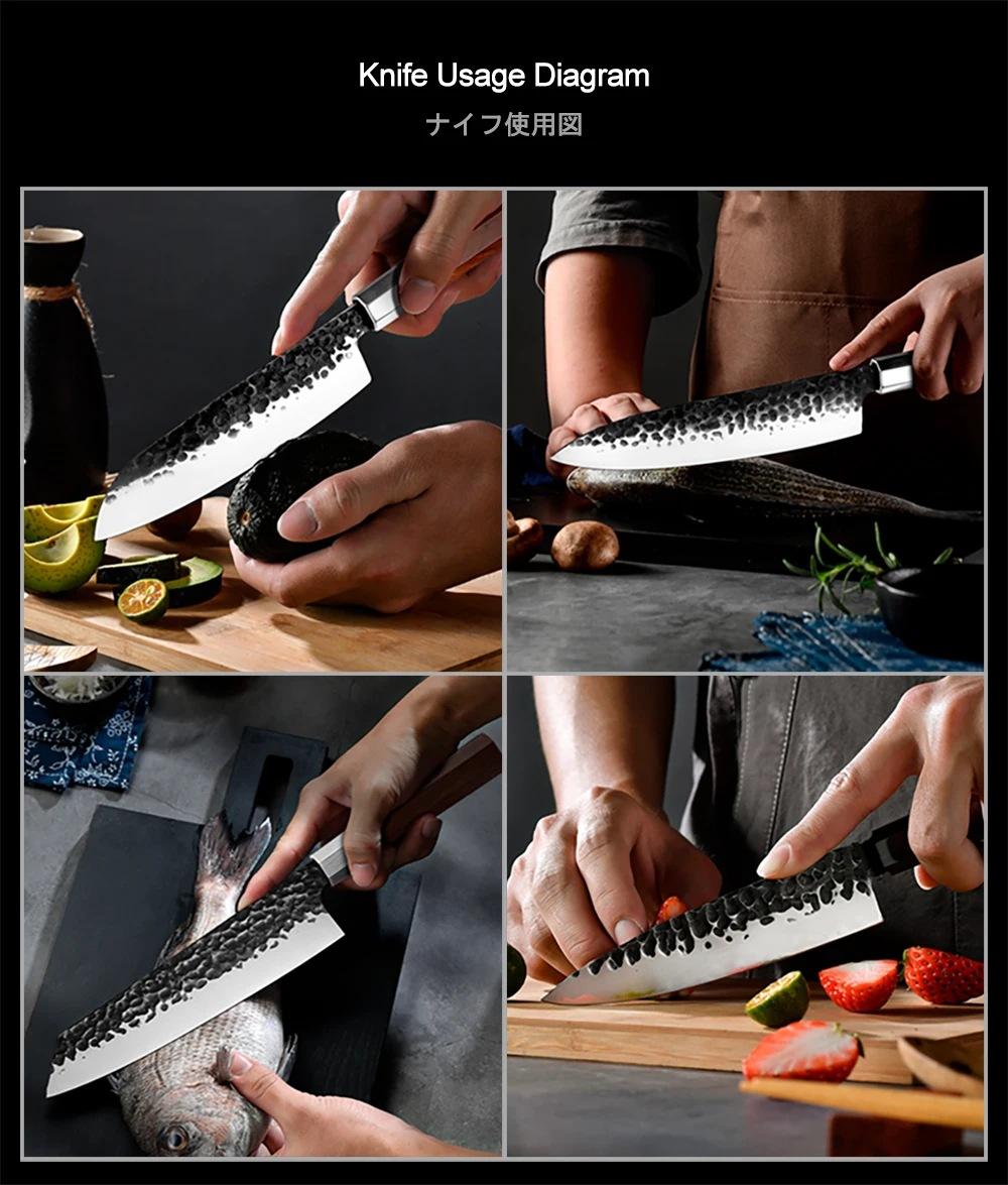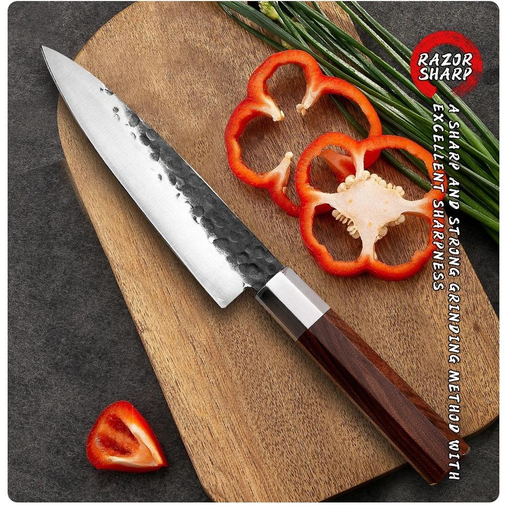 Cuchillo de Chef Forjado Estilo Japonés Guanrui Cuchillo de Cocina para Rebanar Consignación de Comercio Electrónico Transfronterizo Cuchillo de Comercio Exterior Proceso de Forjado