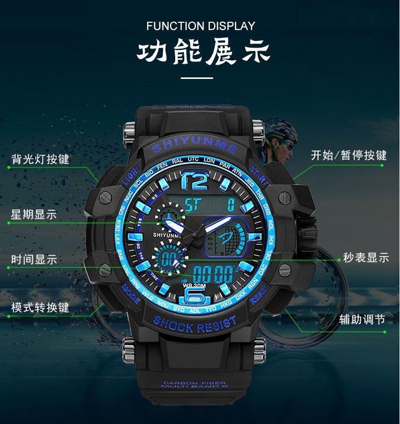 Reloj electrónico de doble pantalla, resistente al agua, luminoso, sencillo y moderno para hombre, ideal para estudiantes femeninas y mujeres, versión coreana, ideal para celebridades de Internet.