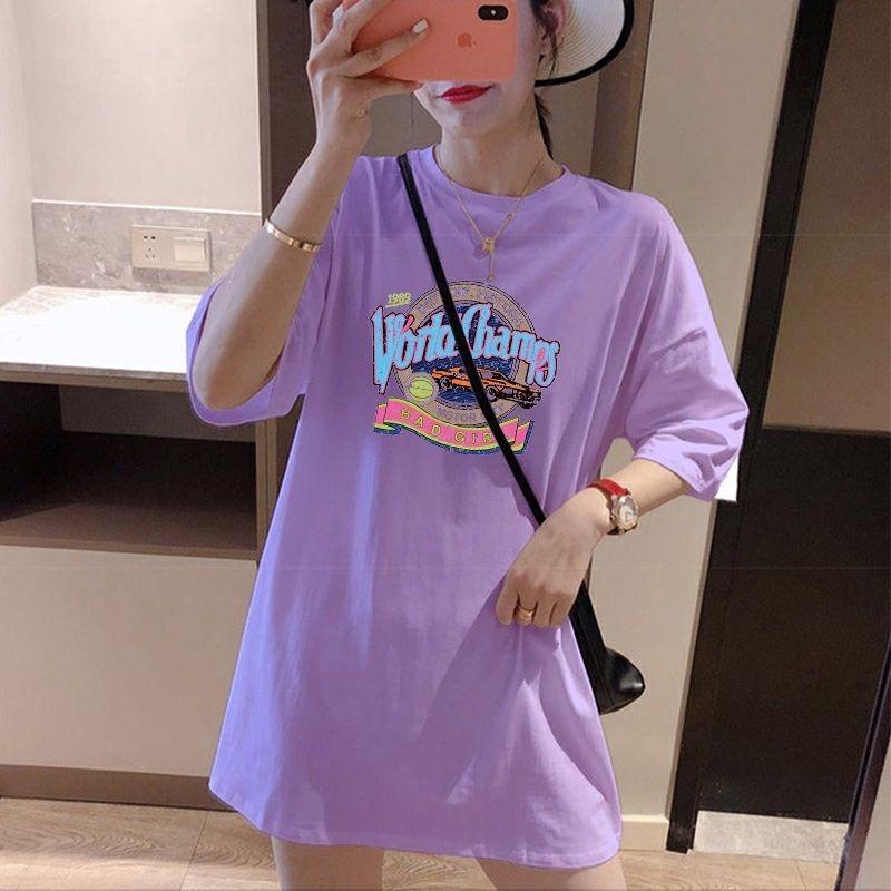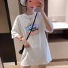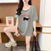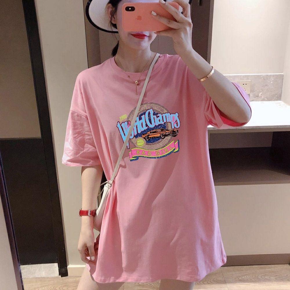 Ropa de embarazo verano mujer camiseta rosa blanca mediana y larga talla grande holgada manga corta algodón manga media top camiseta femenina