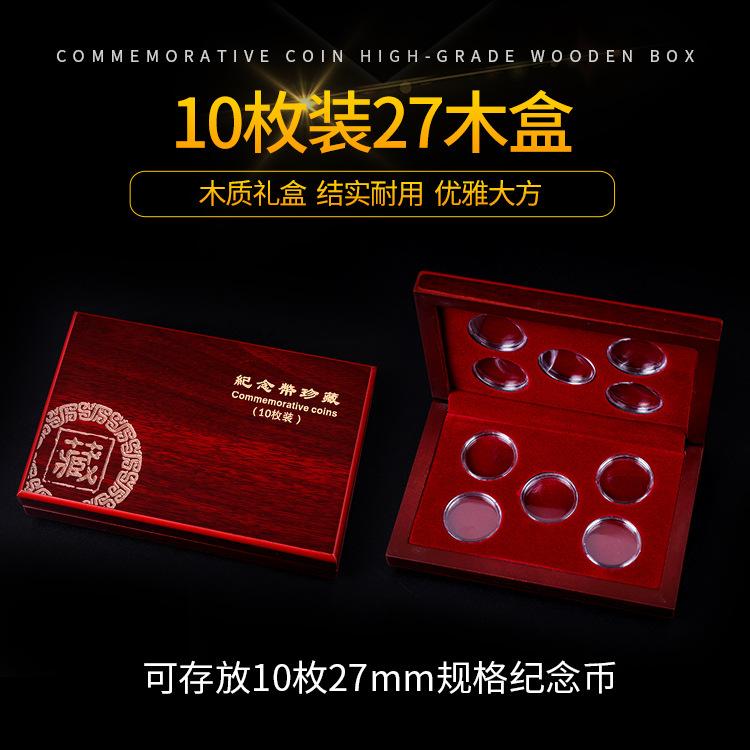 10 piezas 27 caja de madera caja de protección de monedas conmemorativas Zodiac diez yuanes Caja de colección de monedas de 10 yuanes Diez piezas