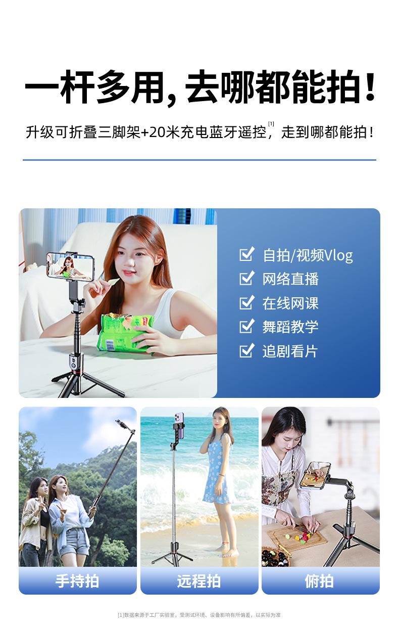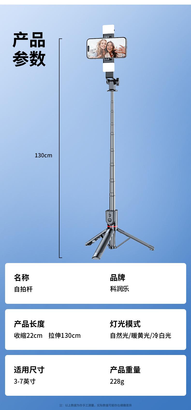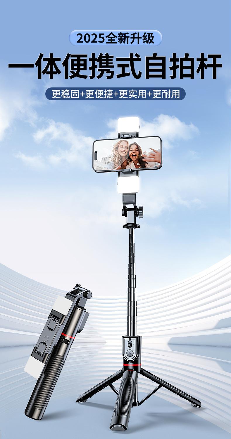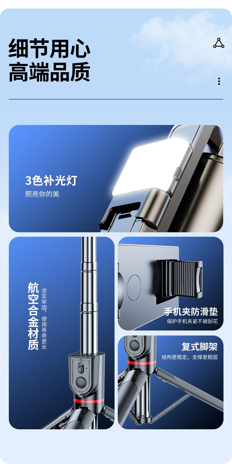 Mini palo selfie transfronterizo Bluetooth alargado con relleno de luz soporte para transmisión en vivo de teléfono móvil trípode telescópico integrado venta al por mayor