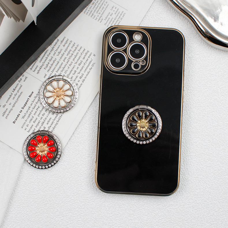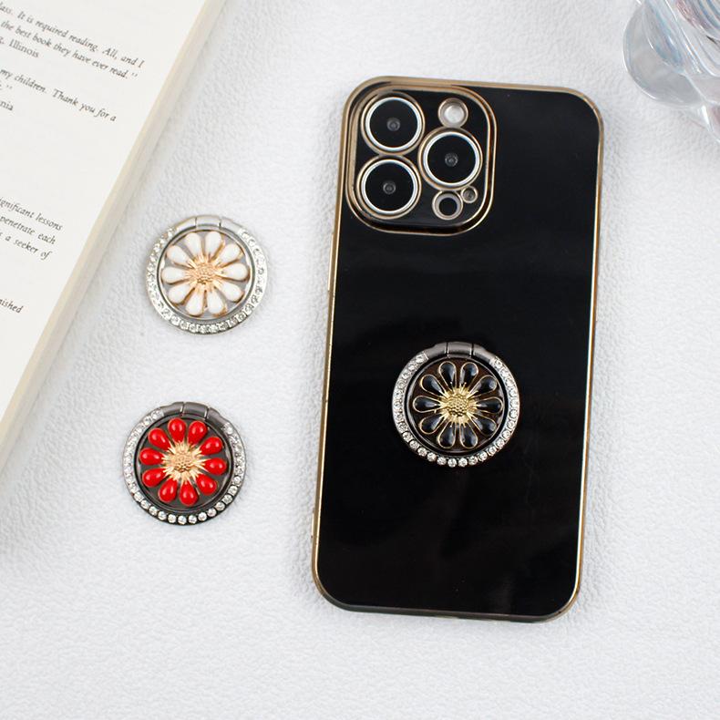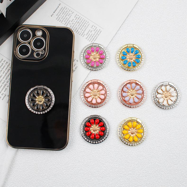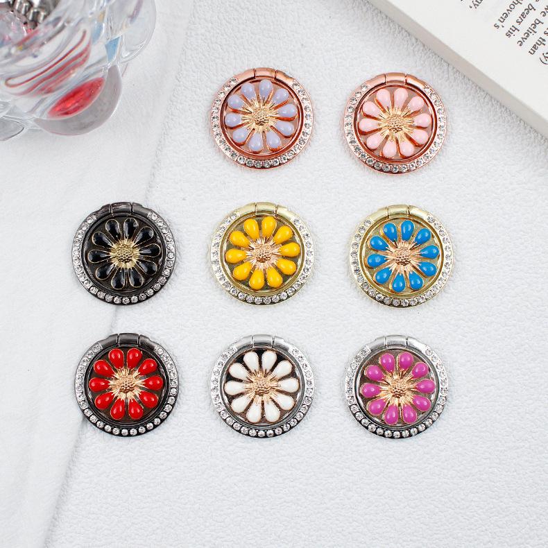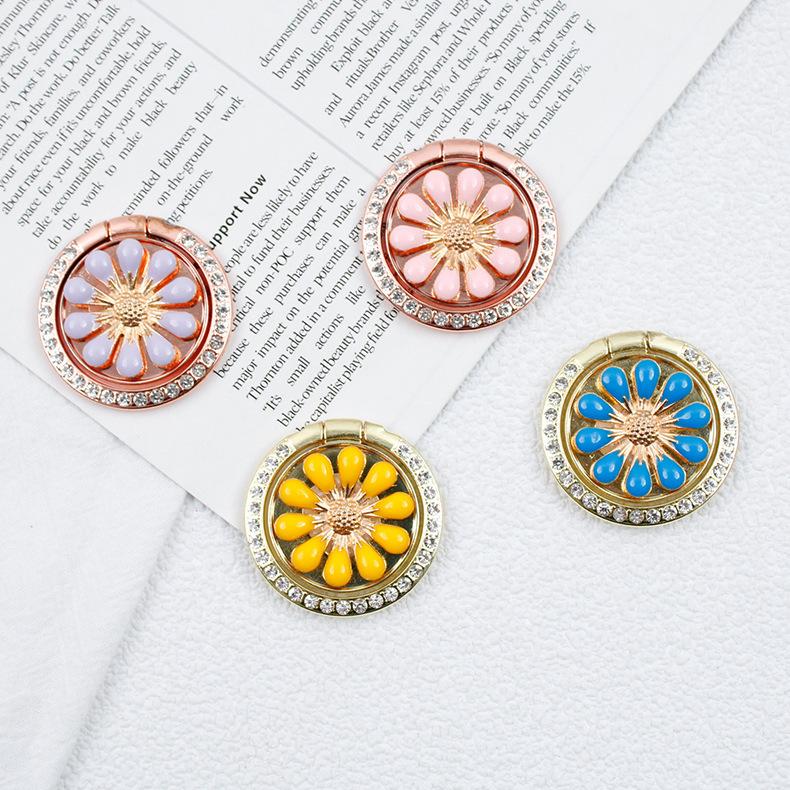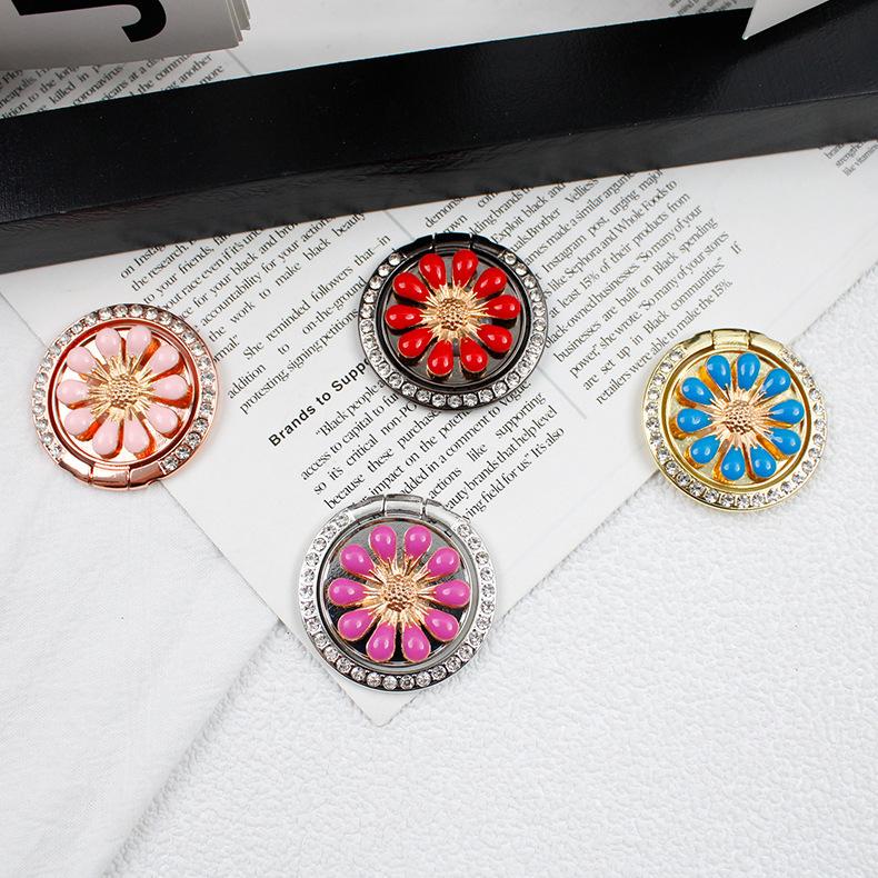 Creativo Hebilla de anillo con diamantes de imitación Soporte para teléfono móvil perezoso portátil de metal para escritorio Multifunción Giratorio Adhesivo Soporte plegable