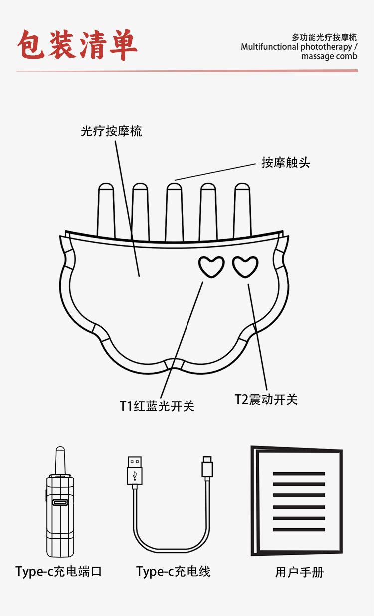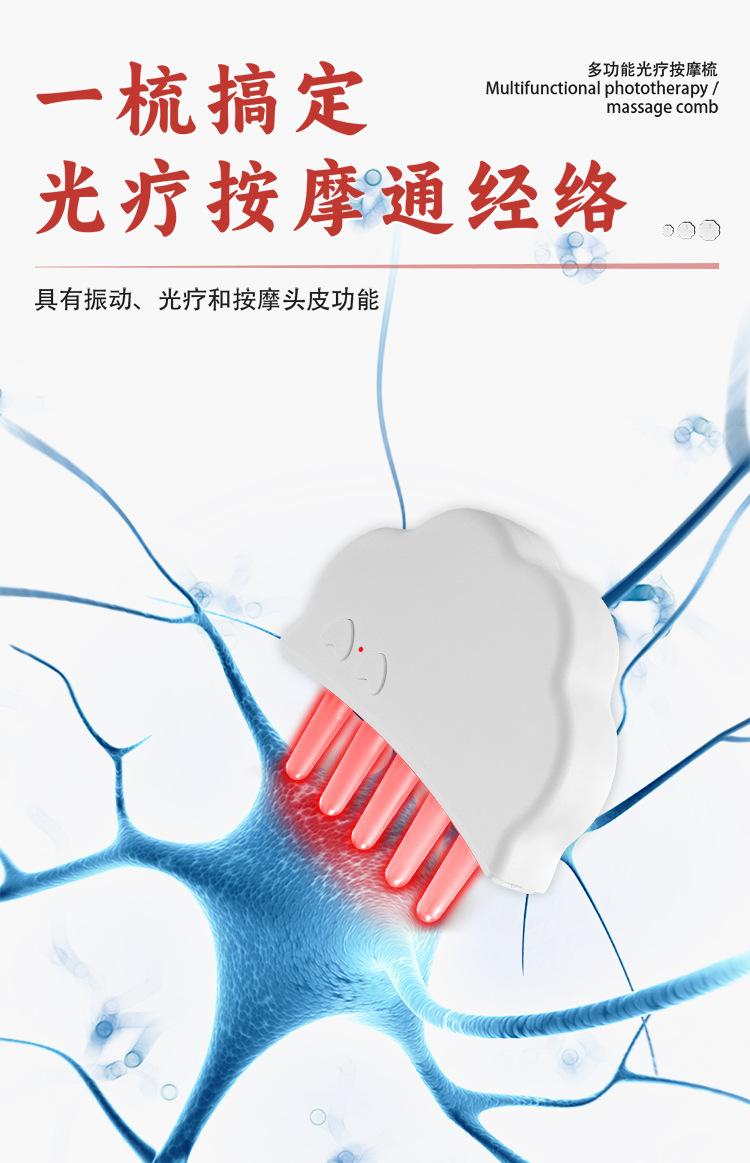 Peine de masaje portátil para el cuero cabelludo, peine de luz roja para el cabello, masaje eléctrico, cuidado del cabello con luz azul, cabezal de fototerapia, peine meridiano