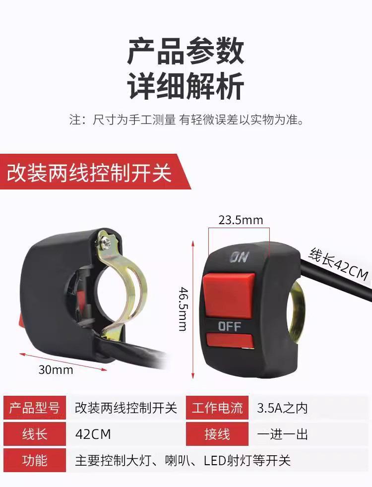 Interruptor Modificado para Motocicleta Manillar Grifo Interruptor de Apagado Vehículo Eléctrico Faro LED Modificado Botón de Interruptor de Doble Flash