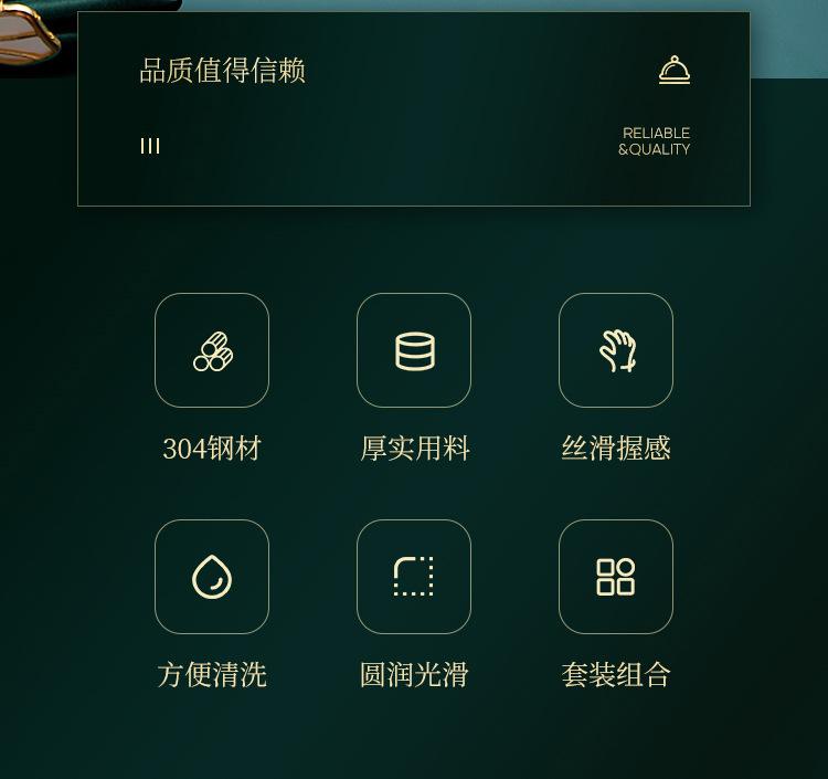 Teaspoon, Coffee spoon, Fruit fork, Tea fork, Ice scoop, Dinner Knife, Fork, Meal spoon, Round spoon, Nine piece set