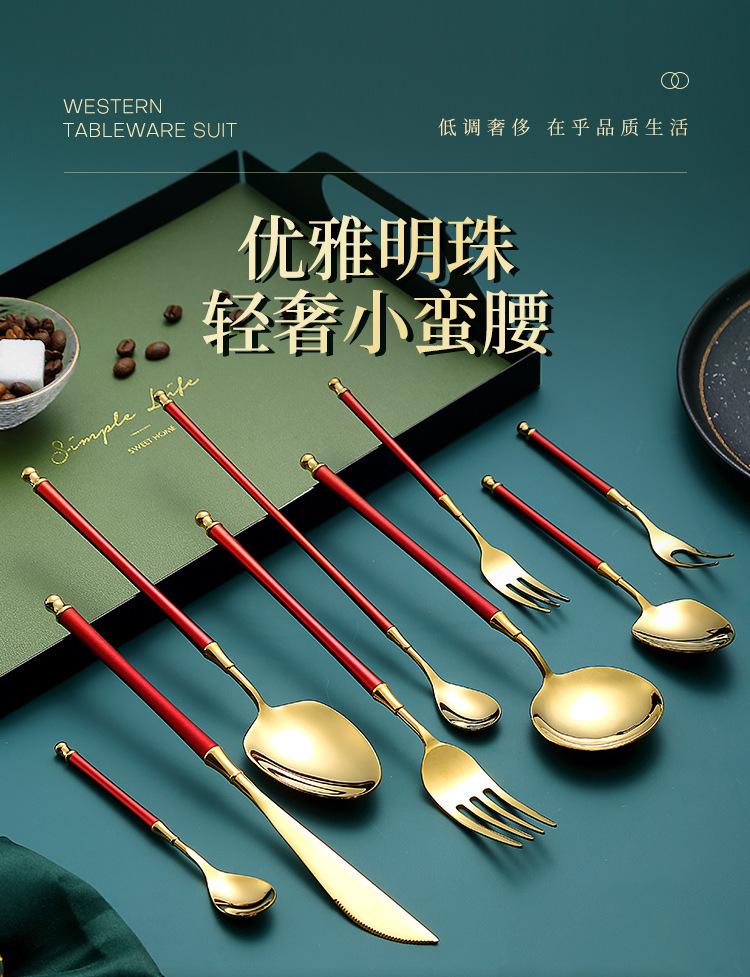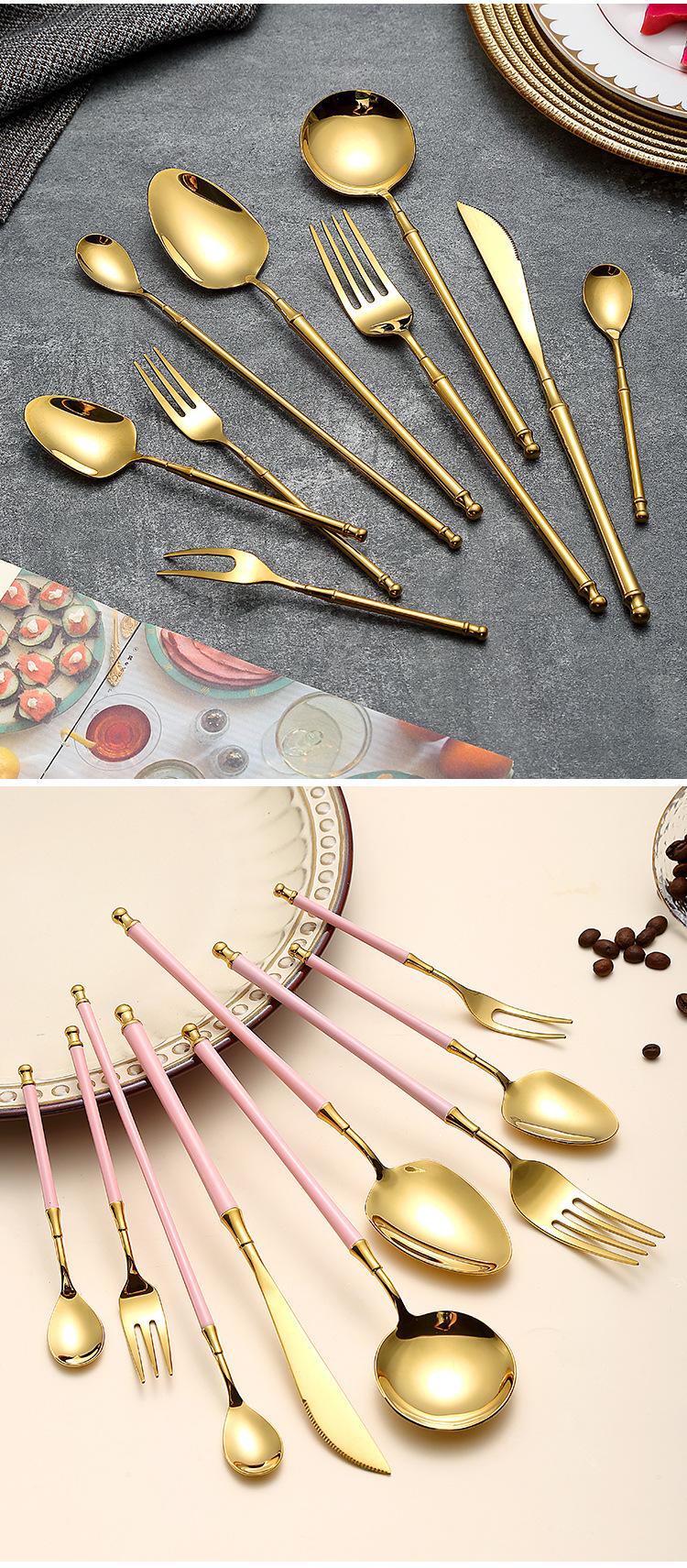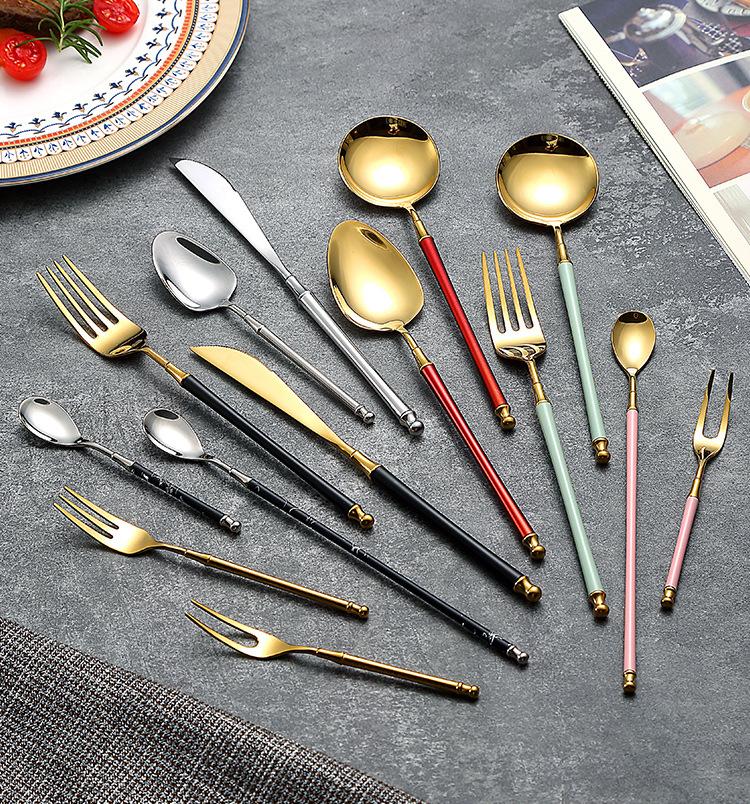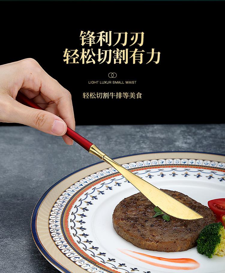 Juego de Cubiertos Occidentales de Acero Inoxidable de Lujo Ligero para el Hogar de Cintura Pequeña, Juego de Cuchillo, Tenedor y Cuchara para Bistec Occidental de Acero Inoxidable para Restaurante