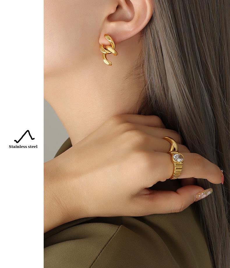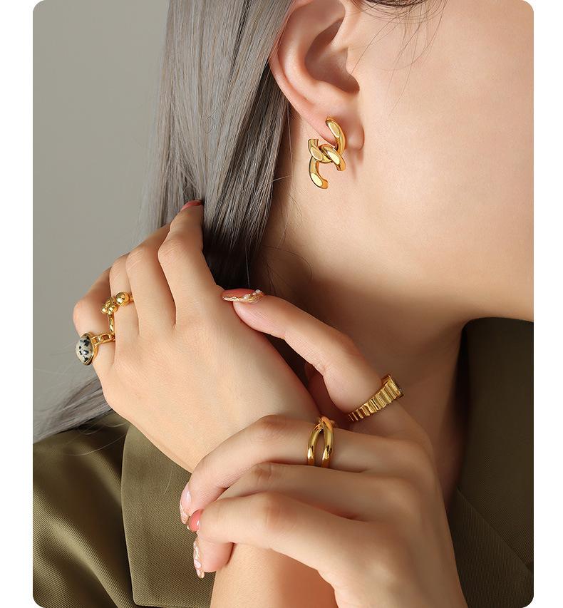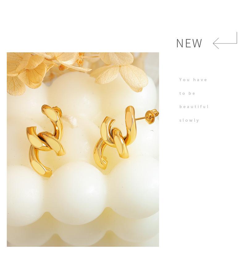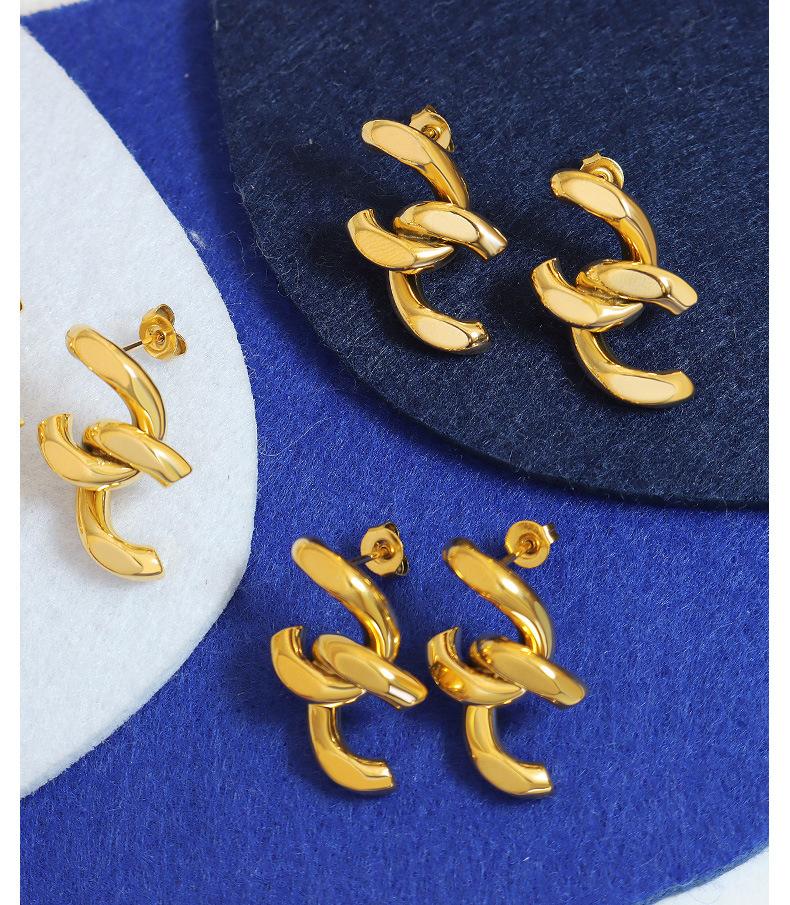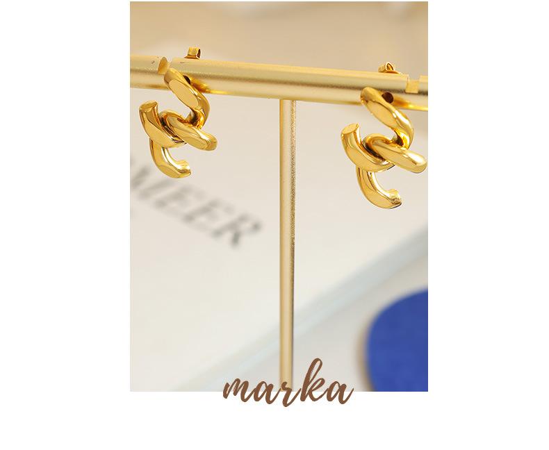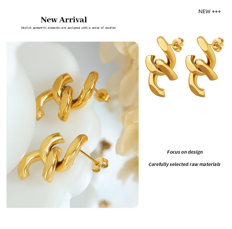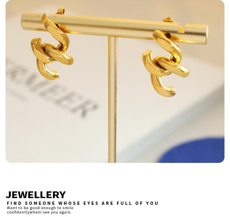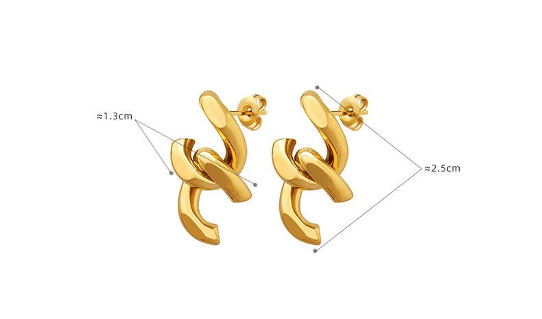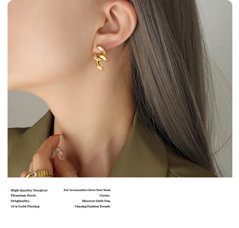 Aretes de punto de cadena europeos y americanos para mujer de acero de titanio chapado en oro de 18k aretes de personalidad ins viento frío al por mayor F393