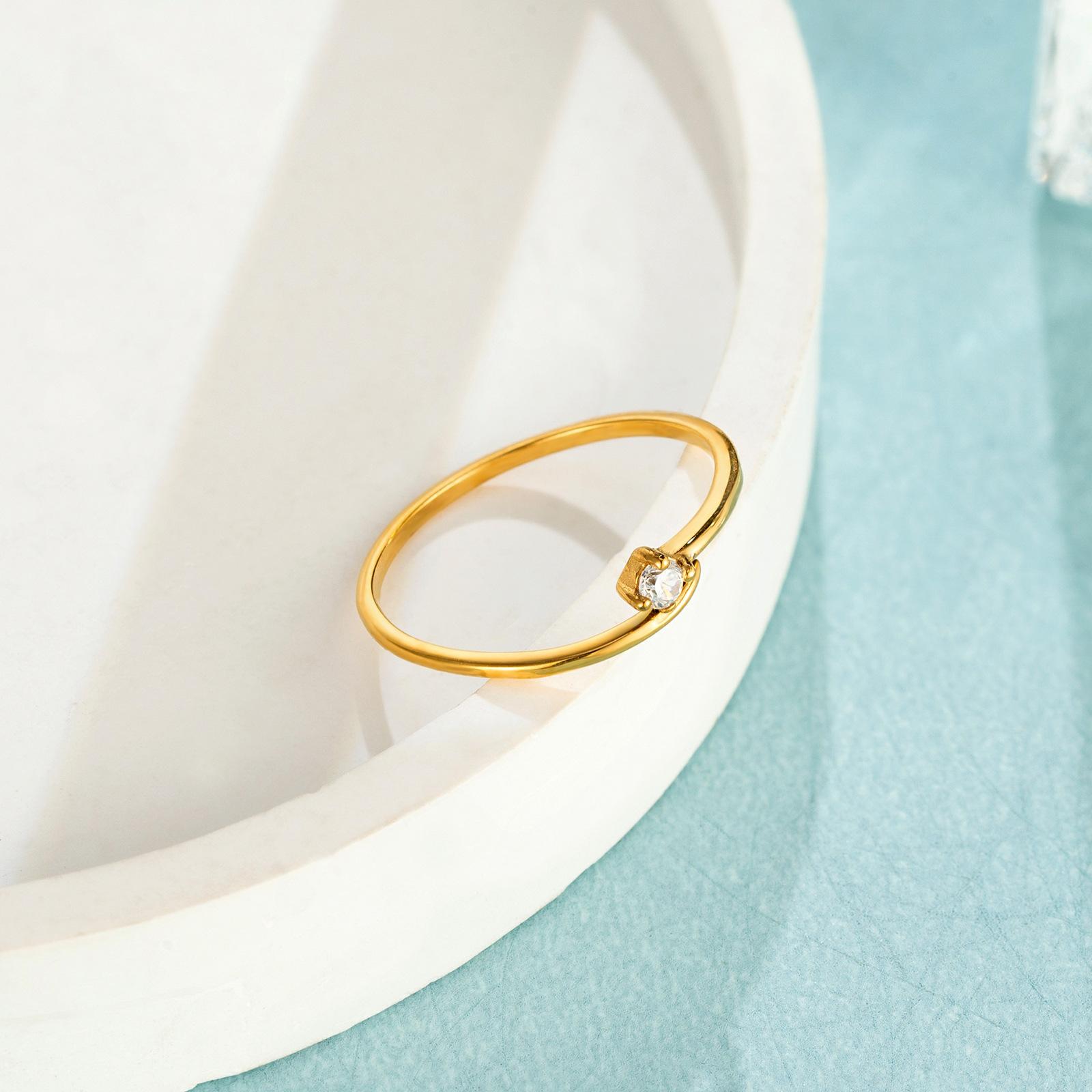 Anillo de circonita con apertura de estilo ins simple, anillo de acero de titanio alto para nicho femenino, no se decolora, joyería de dopamina al por mayor