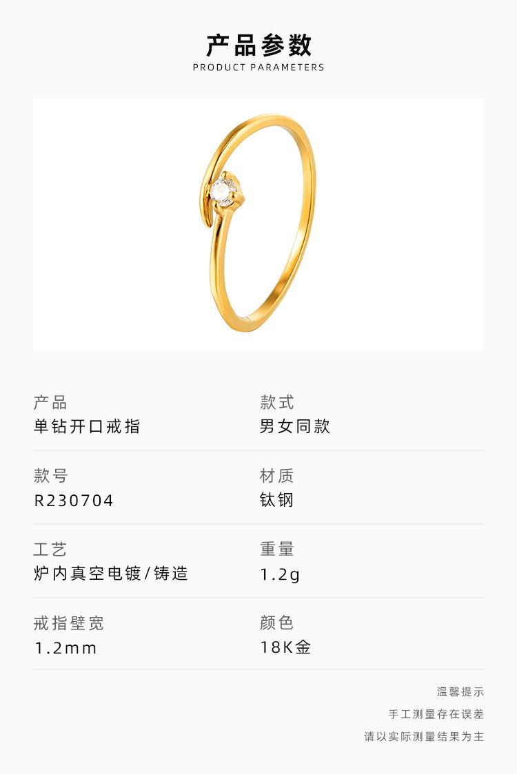 Anillo sencillo de estilo ins con circonita abierta para mujer, anillo de acero de titanio de alta gama de nicho que no se desvanece, joyería de dopamina al por mayor